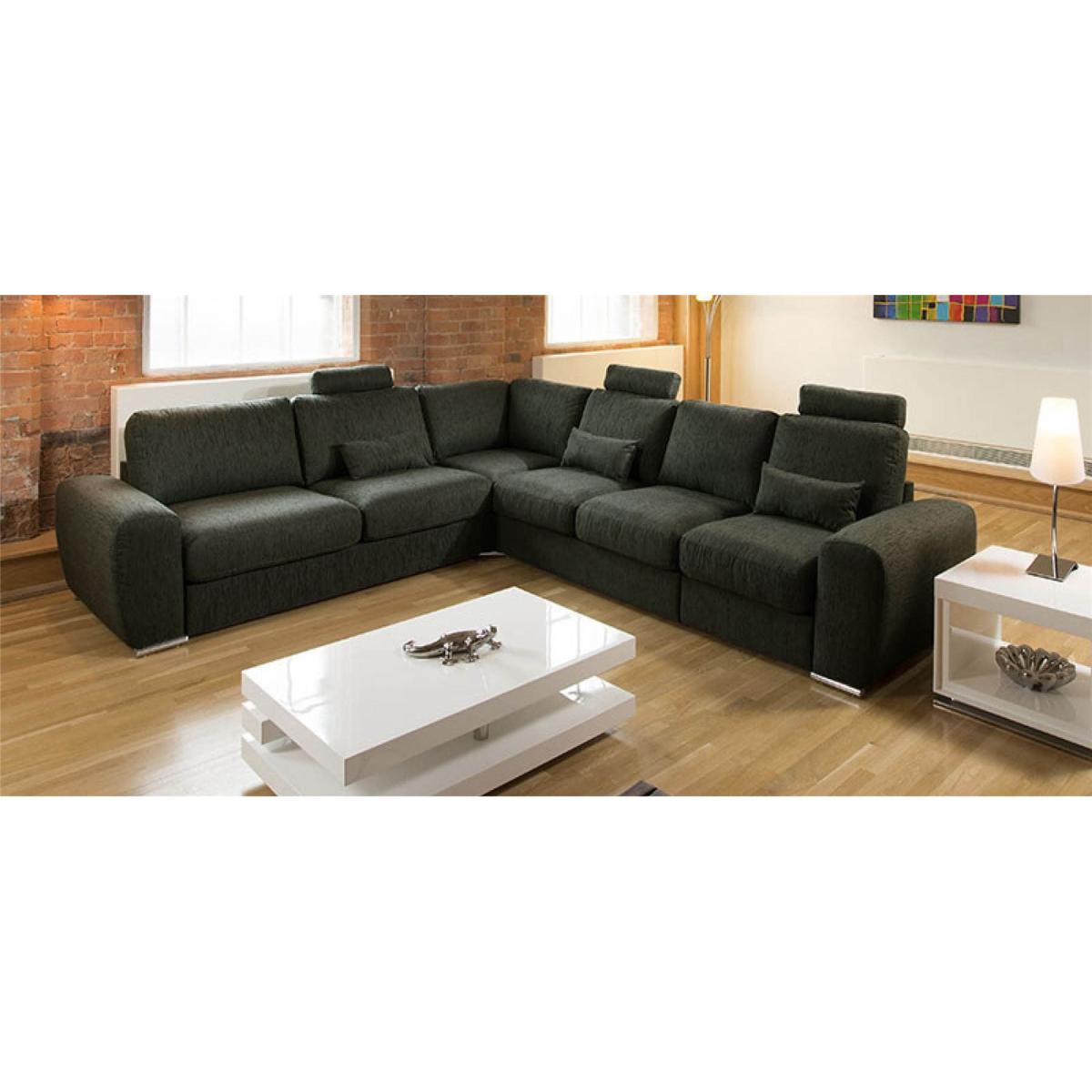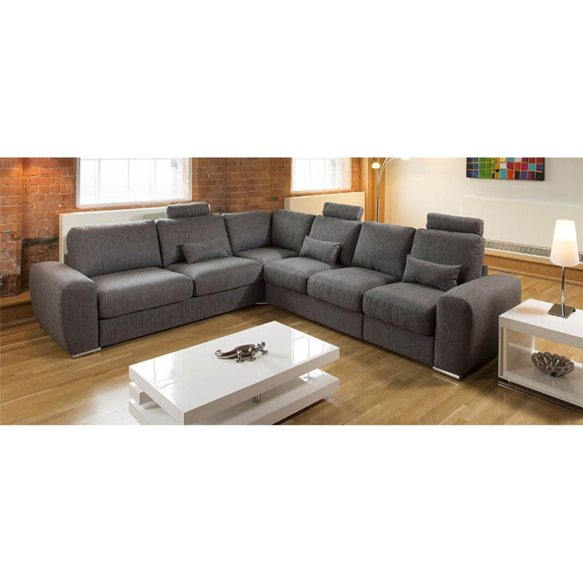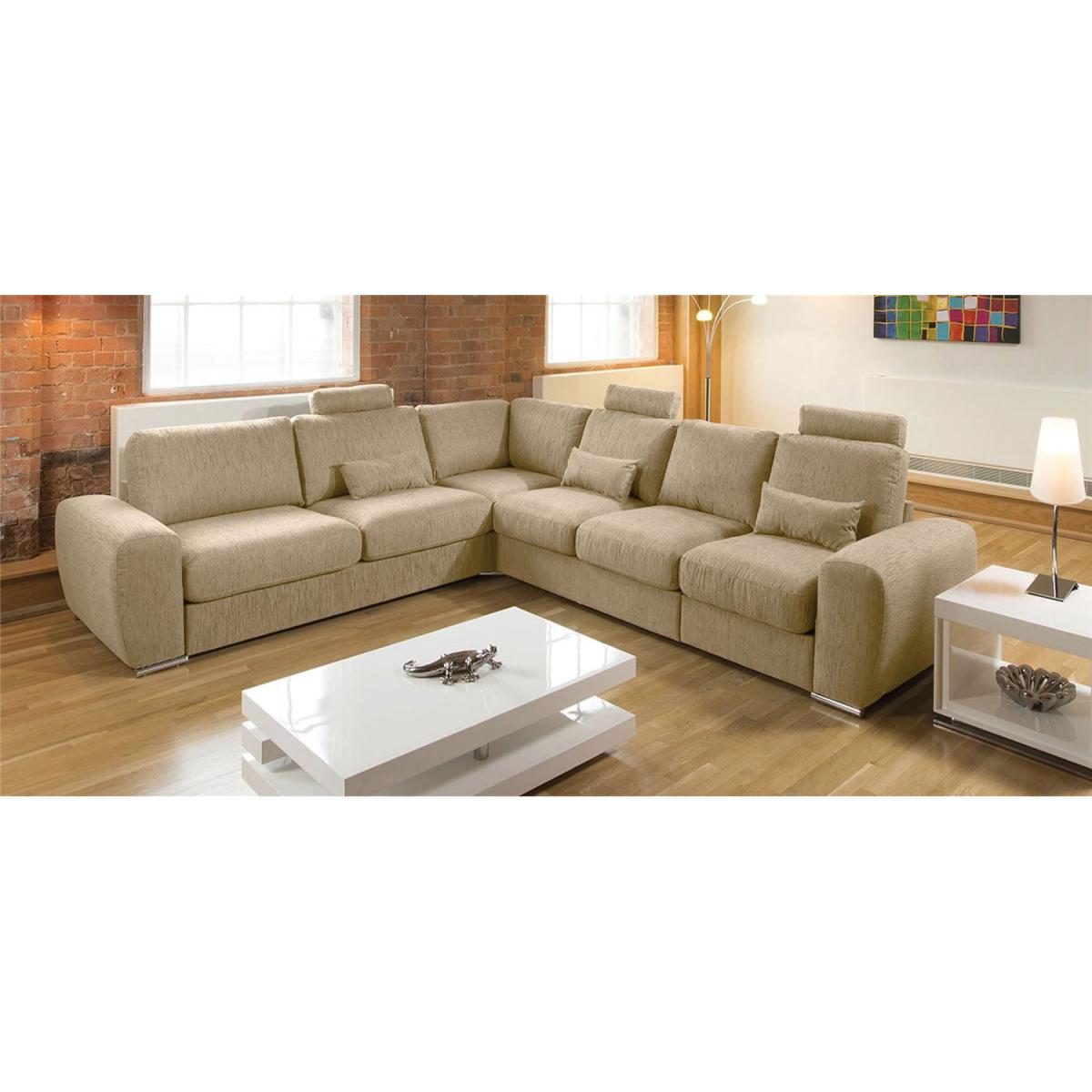 Large range of quality corner L shaped sofas, choose your fabric, choose your style. Available with coordinating headrests, footstools and pillow and scatter cushions. The first thing that you will notice is the quality, it just oozes out of this set. Next will be the incredible comfort that is derived from superior Nosag springs in the seat frame and the pocket springs with high quality foam and fibre seat and back cushions. One touch of the thick heavy duty fabric will confirm that you can have a fabric that combines strength, style and comfort. All this is built on a strong solid wood frame and will be delivered in a few sections that easily bolt together. This giant corner group comes complete with 3 x movable headrests and 3 x pillow shape scatter cushions as pictured. Notice the superwide arms, sleek headrests, stainless steel feet, oversize proportions etc. W335cm D305cm H108cm Fully Modular Sofa Range All dimensions are approximate due to fabric differences. Please allow tolerance of +/- 5cm to any direction