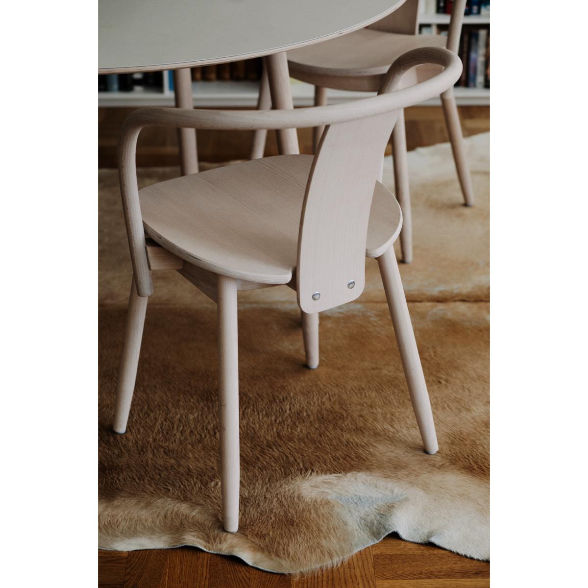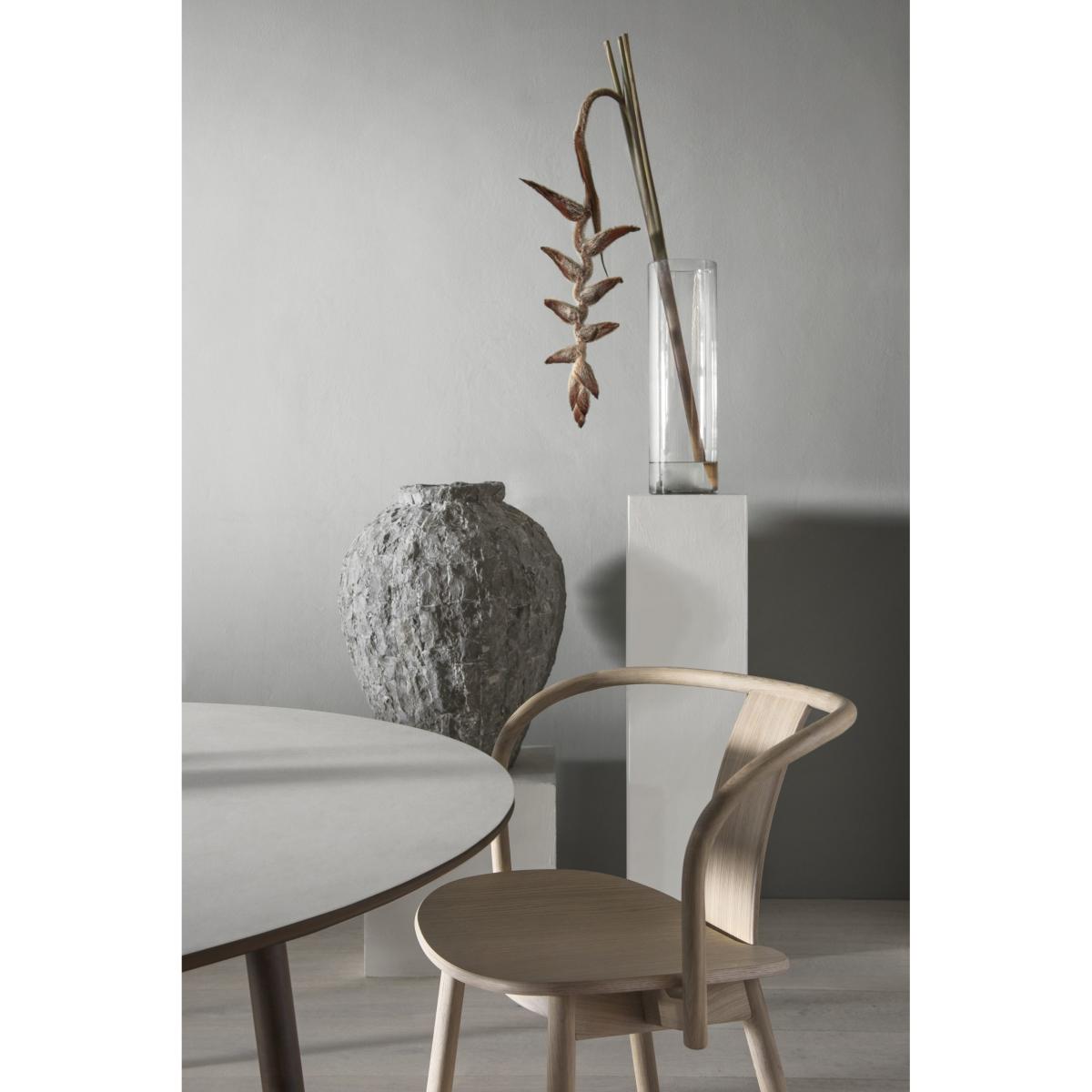 Icha’s clean lines and gentle curves make it a quietly confident addition to a variety of schemes - from Scandi-inspired dining rooms to pared-back home offices. The white-oiled beech lends a soft, natural tone that pairs effortlessly with muted linens, woven rugs or a pop of matt black metal. Styling tip: balance its sculptural form by keeping surrounding furniture low and uncluttered, then introduce texture with a simple seat pad in neutral wool or leather. It works equally well in a cluster around a round table or as an occasional chair tucked into a reading nook.