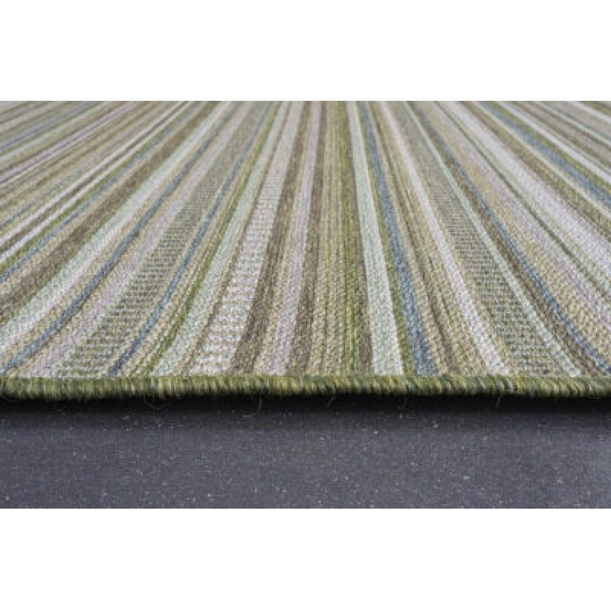 Give your living space ample of realistic charm and magical allure with our Mastercraft 098-0051-4027-96 Brighton Indoor/Outdoor Rug - Green. This rug, which is made from polypropylene, is a great addition to any patio, deck, or garden because it has both aesthetic appeal and useful features. Because this material is resistant to fading, staining, and moisture, you can be sure that your rug will look great even in high-traffic outdoor settings. With its striking colour scheme and sophisticated design, this rug gives your outdoor décor a dash of contemporary style. The striking design improves the overall look of your room by creating a visually captivating focal point. Key Features Total weight: 1185 gr/m 2 Pile height: Flatweave Composition: 100% heatset polypropylene Woven using renewable energy. Easy To Clean All screens vary in colour reproduction and whilst every effort has been made to display the colour as accurately as possible it is for guidance only.