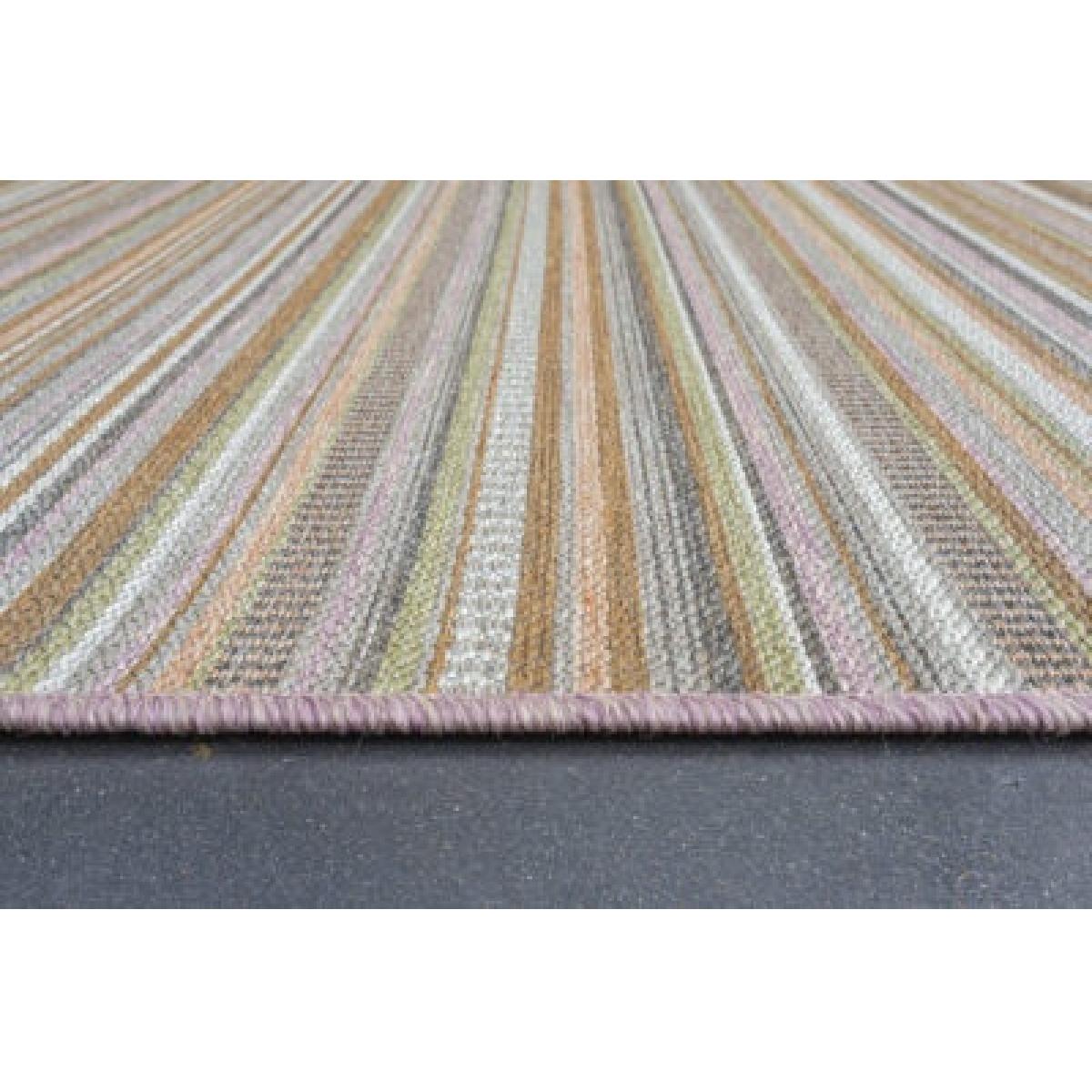 I love this rug because of its versatile, neutral palette and subtle stripe pattern, which makes it ideal for adding a touch of texture without overwhelming a space. It works particularly well in both outdoor and indoor settings, making it a practical choice for patios, verandas, or even kitchens and living rooms. To style it effectively, consider pairing it with natural fibres like wicker or rattan furniture for a relaxed look, or with sleek modern pieces for a contemporary vibe. Due to its outdoor/indoor functionality, it’s a smart option for high-traffic areas prone to spills or weather exposure-just keep it clean and maintain the vibrancy of the colours over time.