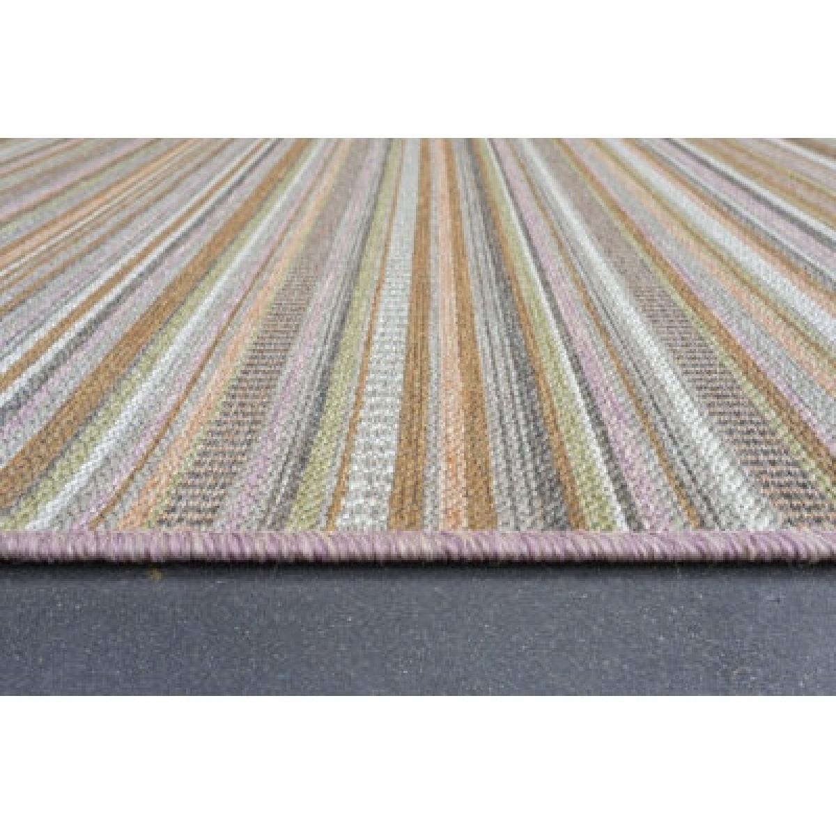 I love this Brighton indoor/outdoor rug for its versatile, understated pattern and neutral colour palette, making it easy to incorporate into various design schemes. Its multi-coloured stripes add visual interest without overwhelming the space, while the practical outdoor suitability means it can be used both indoors and on patios or balconies. It works particularly well in contemporary or coastal-inspired interiors, where its durable, low-maintenance qualities shine. For styling tips, consider layering it over a simple wooden or concrete floor, accessorising with cushions or throws in coordinating colours, and placing it under outdoor dining tables or seating areas for a pulled-together look. This rug's flexible nature also makes it ideal for high-traffic zones, combining style with practicality.