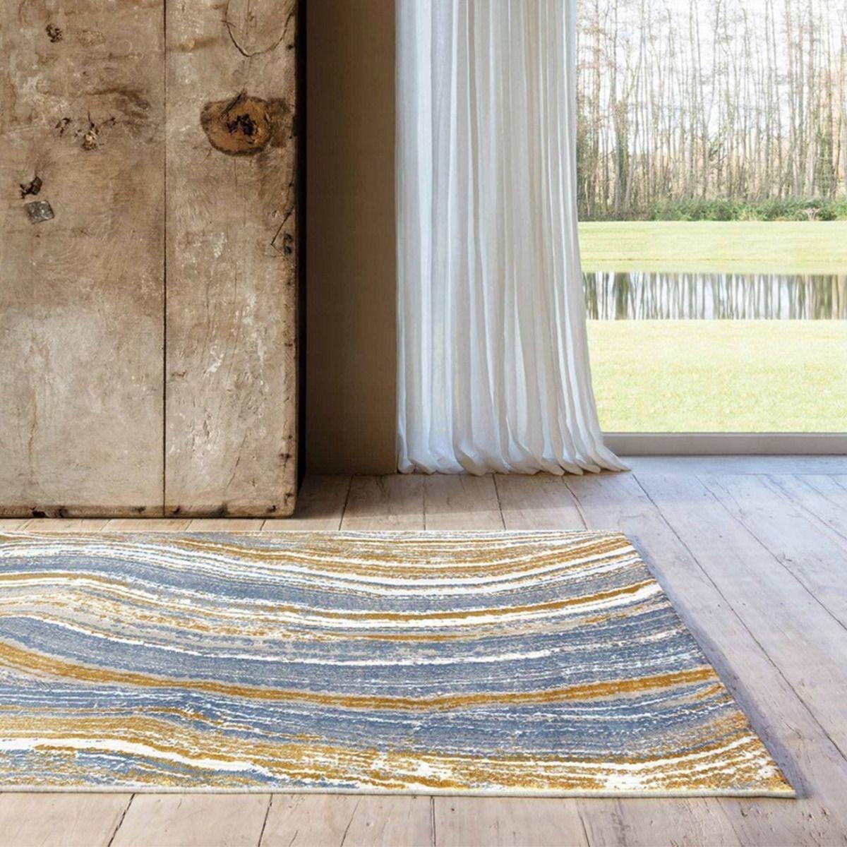 I love this blue rug for its bold, contemporary pattern and versatile colour palette. It works especially well in modern and eclectic interiors, providing a striking focal point without overwhelming the space. Its earthy tones of blue, gold, and grey can seamlessly tie together various colour schemes-think navy and mustard accents or neutral furnishings. For practical styling, consider pairing it with minimal furniture to let the pattern stand out or layering with textured cushions and throws for added warmth. Its size makes it ideal for living rooms or open-plan spaces, under a coffee table or dining table, where it can anchor furniture arrangements while adding visual interest.