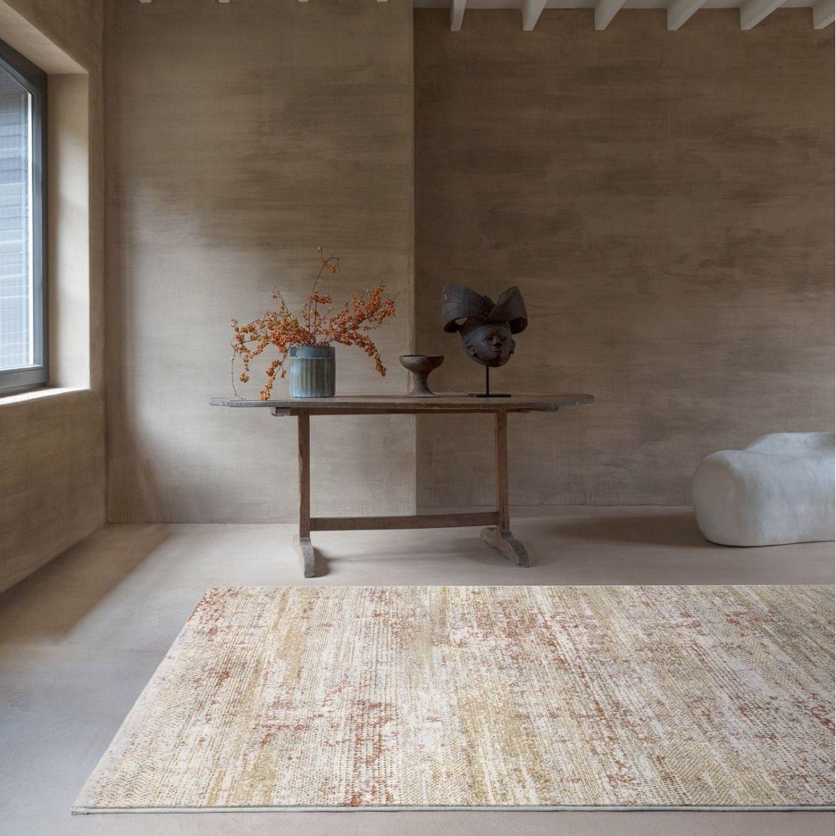 Get cozy with the sensuously soft sensation provided by our Mastercraft 472.03/Jc700 Stella Wool Wilton Rug - Beige. With its white, gold, rust color palette, this rug provides immense comfort and the striking abstract design accentuate well with all kind of interior décor. Place it in your living room under the coffee table, in your hallway to create a sophisticated appeal or in your bedroom as a bedside rug, this rug’s sure to accentuate your interior décor. Fabricated from a blend of Wool and PET yarns, this rug exudes high durability, resilience, comfort, and easy maintenance. Key Features  Pile Height: 9.mm Composition: Wool, PET Yarns Machine Made Easy To Clean All screens vary in colour reproduction and whilst every effort has been made to display the colour as accurately as possible it is for guidance only.