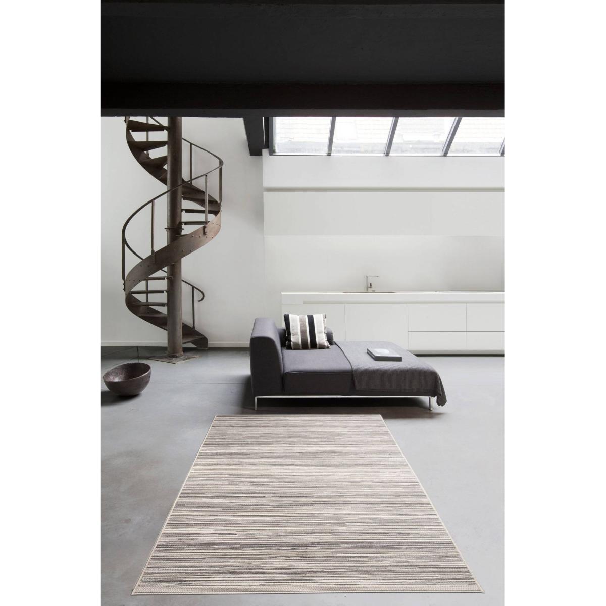 I really like this rug because of its subtle, neutral tones and simple striped pattern, which make it incredibly versatile for a range of interiors. It works particularly well in contemporary spaces or more traditional rooms looking for a modern touch without overwhelming the decor. To style it effectively, consider layering with textured cushions or throws to add depth, or use it as a grounding piece in living rooms with minimalist furniture for a clean, cohesive look. Practical tips include ensuring the rug is adequately sized for the space-aim for it to sit under key furniture pieces-and using non-slip underlay to keep it securely in place, especially in high-traffic areas.