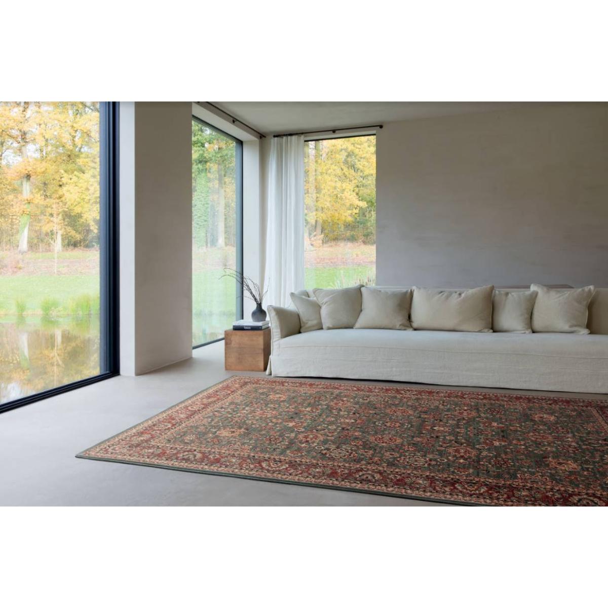 I love this rug because of its classic design and versatile colour palette, which makes it an easy addition to both traditional and contemporary interiors. It works particularly well in living rooms or bedrooms where a cosy, grounded feel is desired. Practical styling tips include pairing it with neutral furniture and adding textured textiles such as cushions or throws to enhance its intricate pattern. It’s also robust enough to handle daily wear, making it ideal for high-traffic areas. To complete the look, consider layering it over a hardwood or laminate floor to really showcase its detailed border and enhance the overall aesthetic.