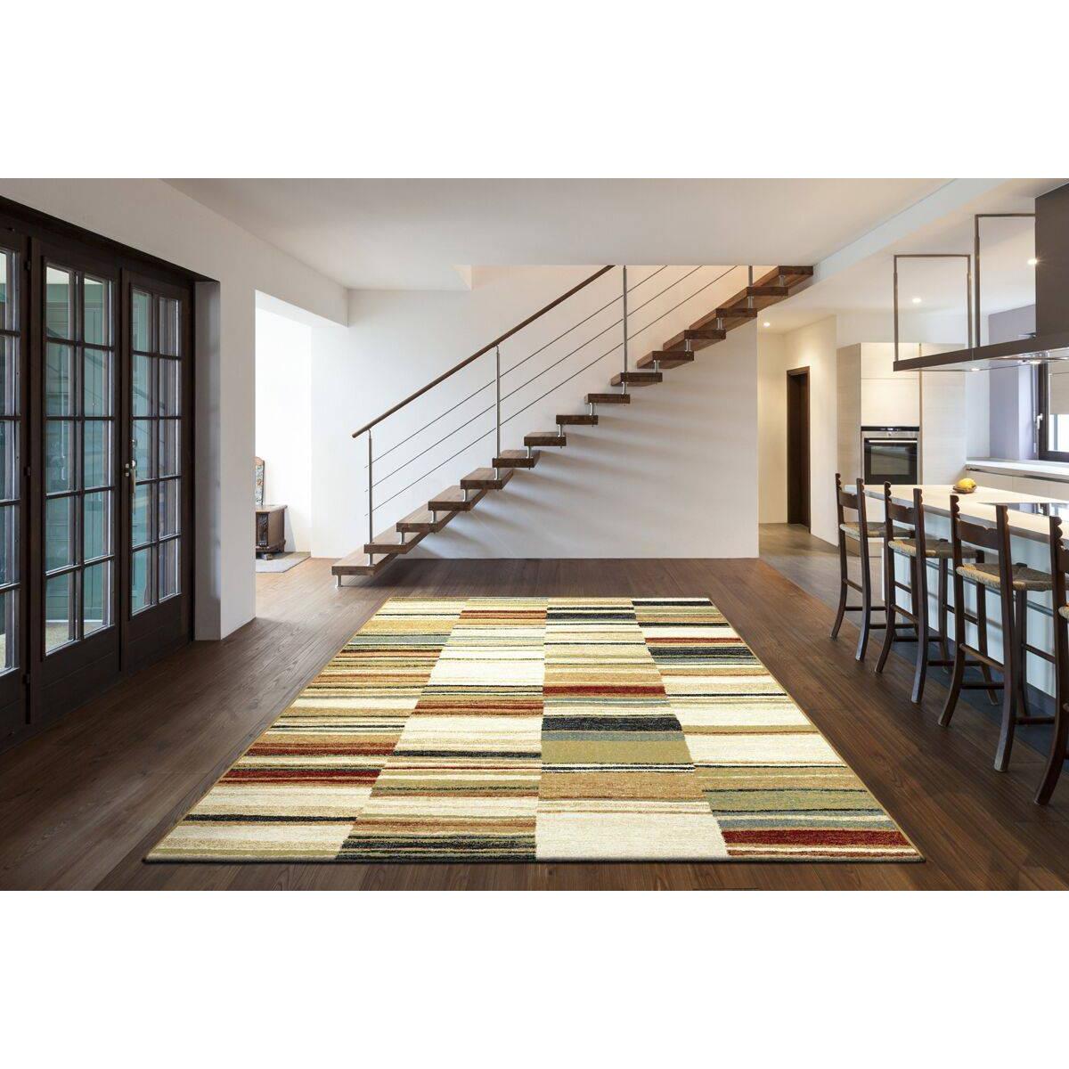 The Mastercraft Woodstock rug is a versatile piece that works well in both contemporary and eclectic interiors thanks to its mix of earthy tones and varied stripe pattern. I love how it adds visual interest without overwhelming a space, making it ideal for living rooms, bedrooms, or even home offices. Practical styling tips include pairing it with neutral furniture to let the rug stand out, or layering with textured throws and cushions for a cosy, layered look. Its pattern also helps hide foot traffic or small spills, making it a practical choice for busy households. This rug's adaptable palette makes it easy to incorporate into different colour schemes and design styles.