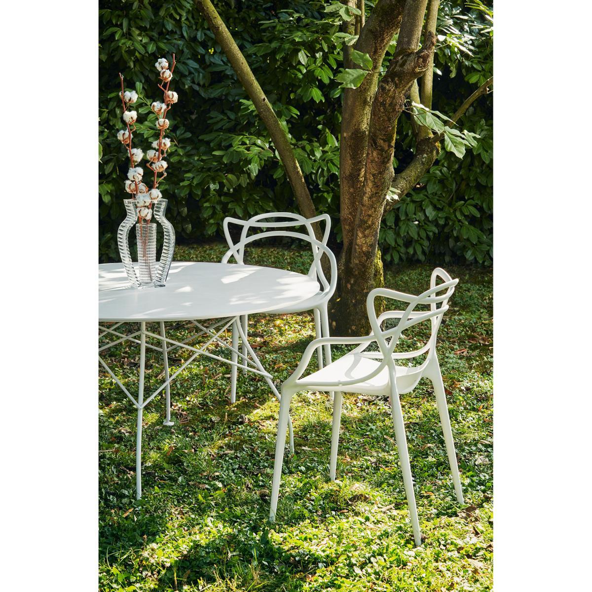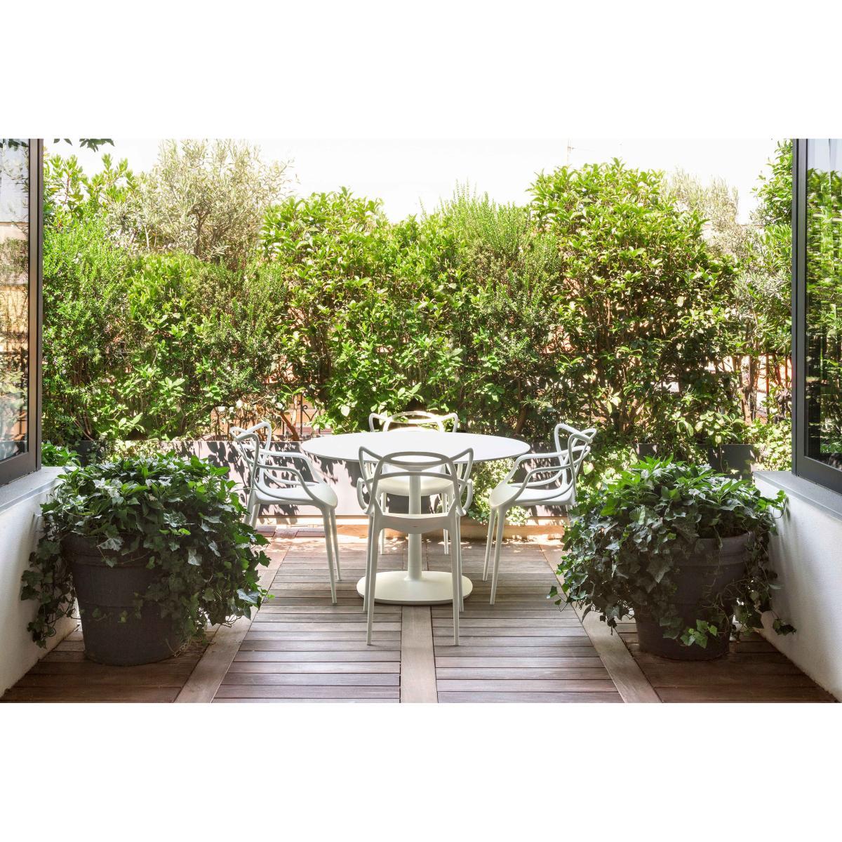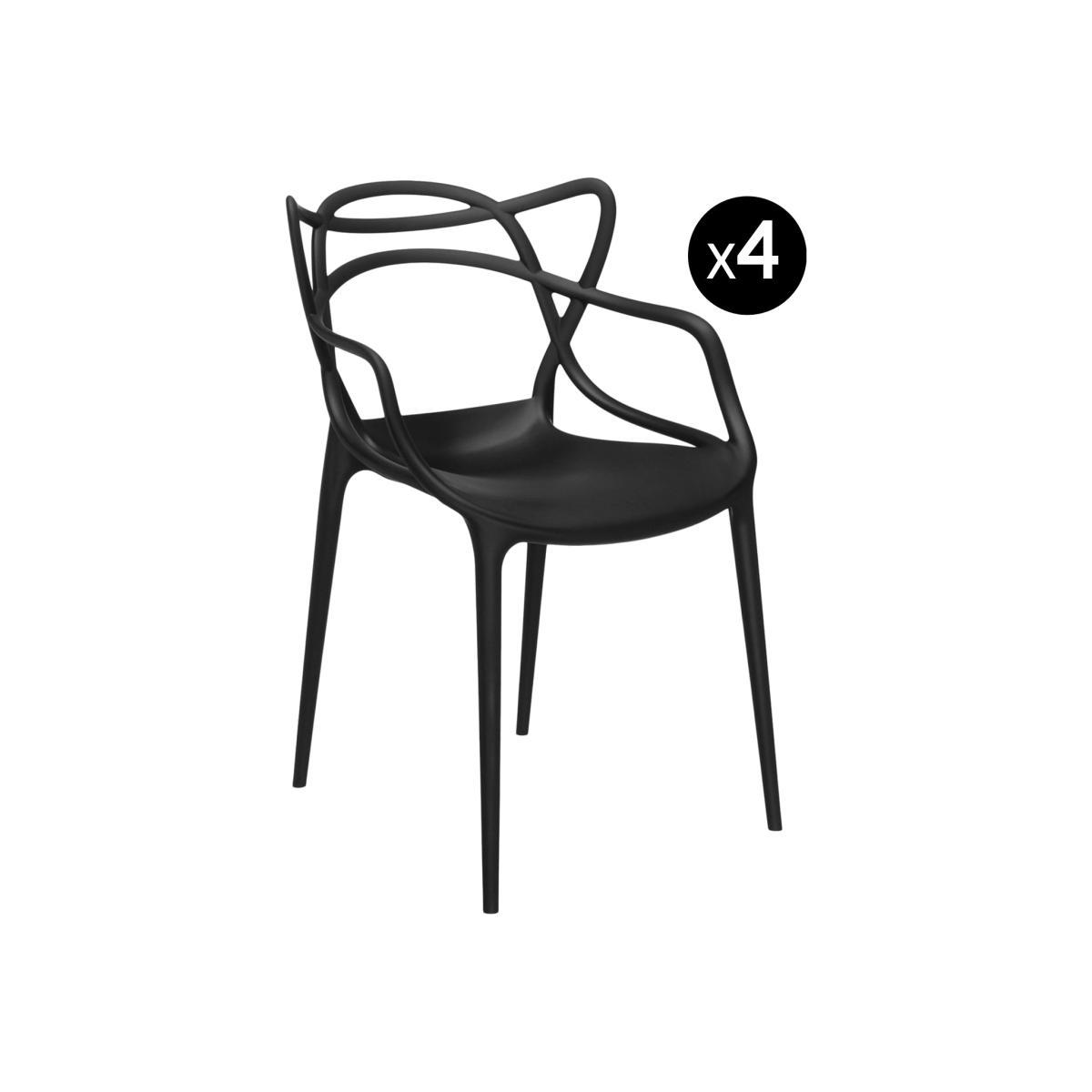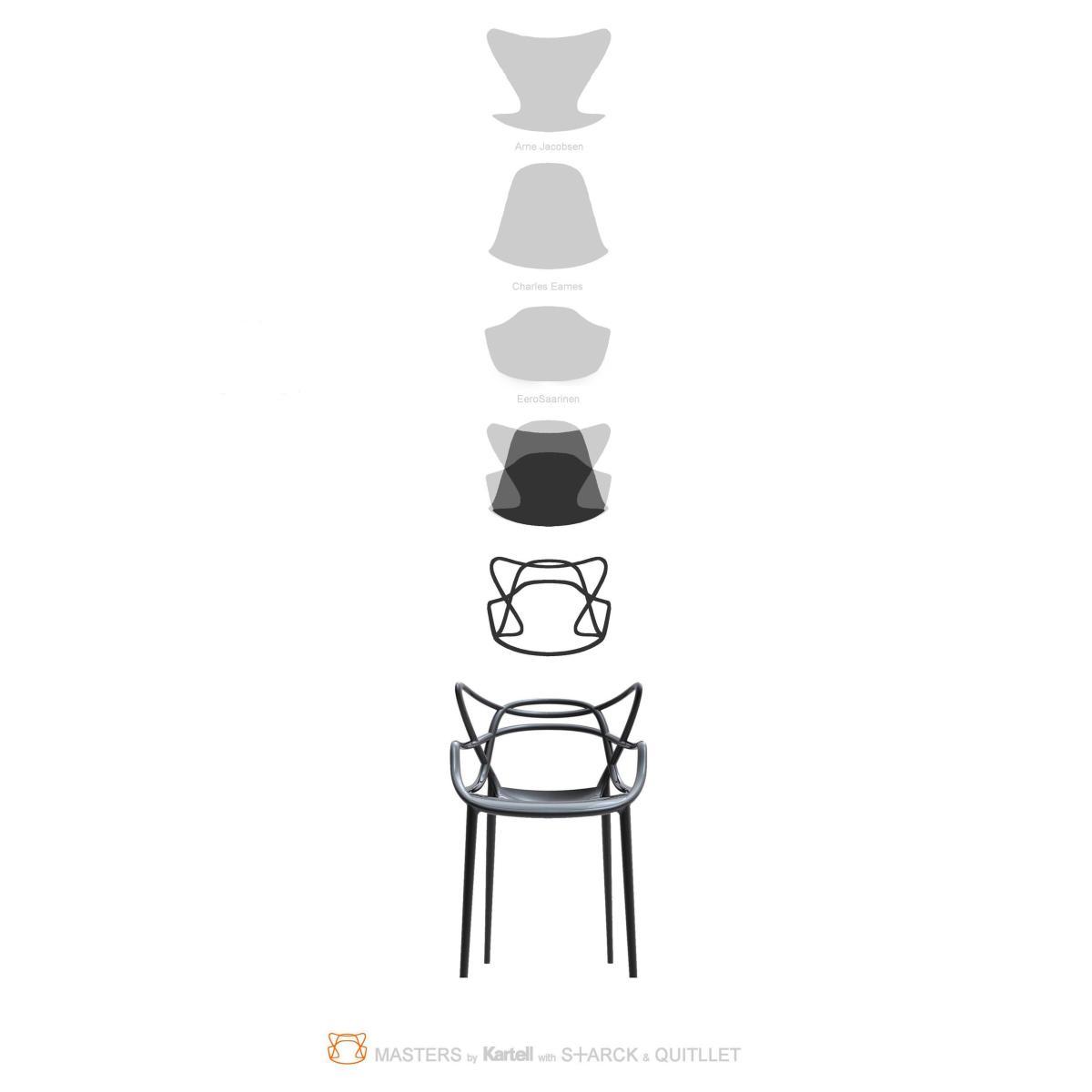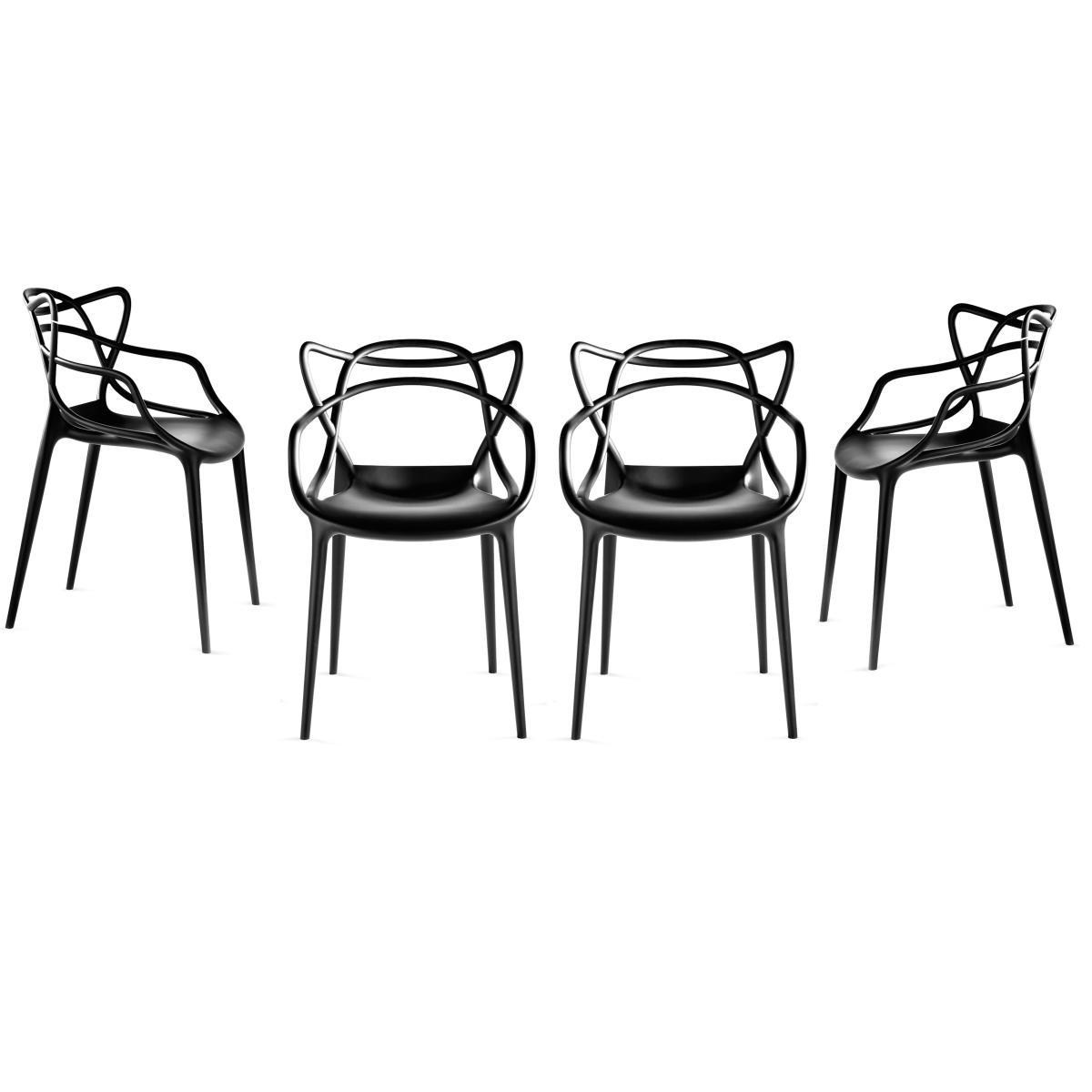Re-arrange your eating area with this set of 4 stylish but affordable Masters chairs! A new master stroke by Philipp Starck! This futuristic-looking chair pays tribute to the icons of the past. The plaited sinuous and dynamic lines in the backrest remind us of three classics of contemporary design, namely the Tulip Armchair by Eero Saarinen, Eiffel Chair by Charles Eames and Series 7 by Arne Jacobsen… This attractive, hybrid fusion of styles is characterized by playing with empty and full spaces. The original seat made of polypropylene is large and comfortable. Masters is a stackable, useful armchair that we love not only for its design, but also for its affordable price! It is on its way to become one of the classics, too! Price stated above is for a set of 4 chairs.