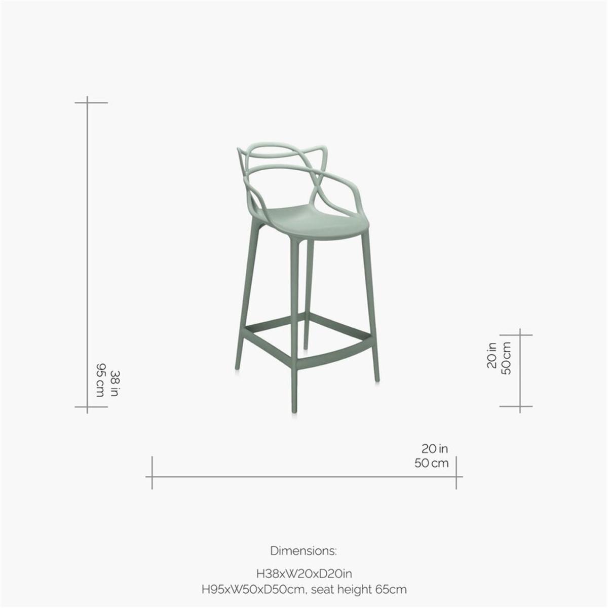 I love this stool for its contemporary yet slightly playful design, making it versatile across various interiors. It works particularly well in modern kitchens or breakfast bars, where its clean lines and light colour can keep the space feeling bright and airy. The design also lends itself to more casual or eclectic settings-think stylish cafes or relaxed lounge areas. Practical styling tips include pairing it with soft textiles or colourful accessories to soften its cool, sculptural form, or mixing it with other materials for a layered look. Its sturdy frame and comfortable seat make it both functional and stylish, perfect for adding a touch of modern elegance without overwhelming the space.