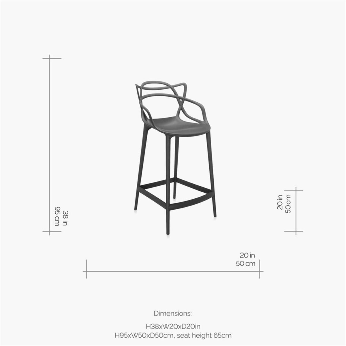 I often reach for the Masters stool when I need seating that feels both light and sculptural. Its moulded polypropylene form and stacked silhouette suit minimalist kitchens, industrial lofts or Scandi-inspired breakfast bars, while the open-weave back provides visual interest without bulk. For styling, try a boucle or wool pad in a contrasting colour to soften the lines and add comfort, or pair two at a slim console table in a hallway for an unexpected touch. Thanks to its stackable design, it’s also perfect for city flats where extra stools can be tucked away when not in use.