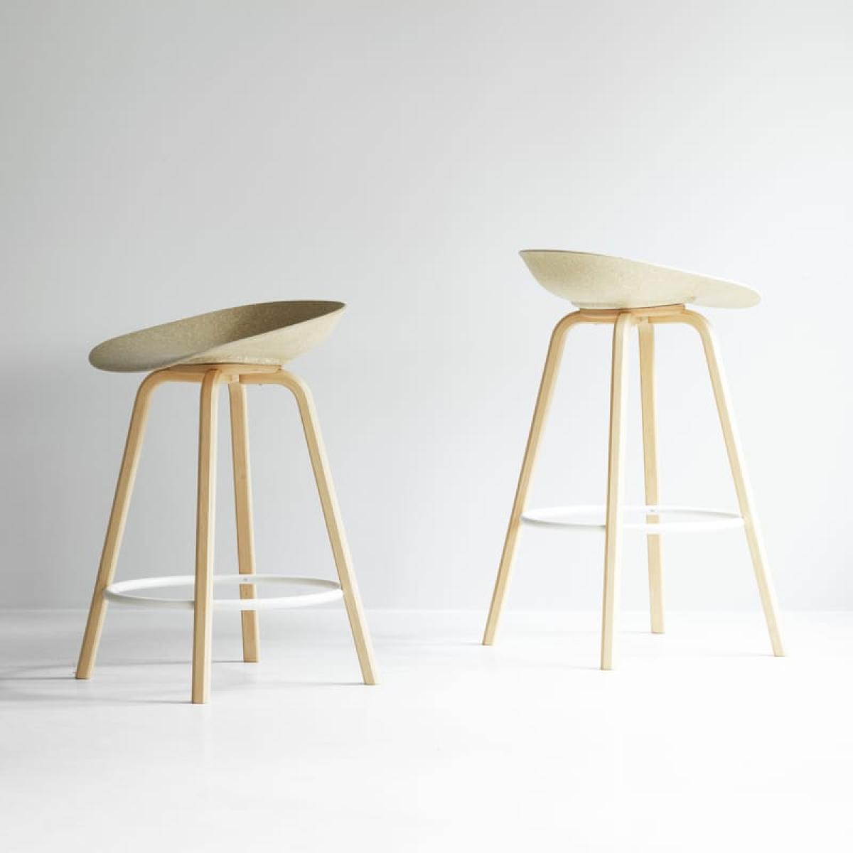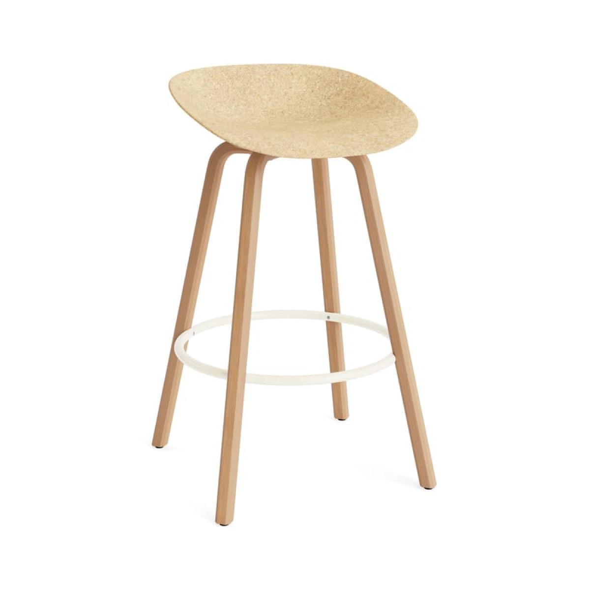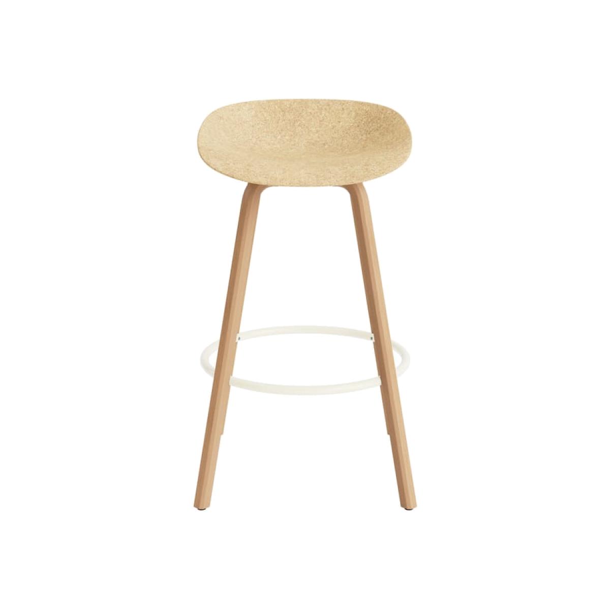 A Bar stool designed for innovation and circularityWith a focus on innovation and sustainability, the Mat collection is available in a Bar stool version to meet new uses while reducing environmental impact. Its Shell is made from Hemp or Eelgrass, a Navy algae, offering a responsible alternative to synthetic materials. True to the principles of the 3. Rs - reduce, reuse, recycle - the Mat Bar stool combines ethical commitment with contemporary design. A long-term research projectThe fruit of a lengthy research process led by the Danish studio Foersom & Hiort-Lorenzen, Mat is part of a pioneering approach initiated in the late 90s. Peter Hiort-Lorenzen explored natural alternatives to plastic and turned to hemp, renowned for its strength, stability and durability. Innovative, eco-responsible productionThe shell of the Mat High stool is made from hemp and eelgrass fibres, bound with a recyclable binder. The mixture is compressed then molded, before being carefully sanded and treated with VOC-free Linseed oil, for a natural, resistant finish. Materials with a low ecological footprintLocally-grown Hemp grows quickly, consumes little water and absorbs CO2. It enables us to make the most of an often neglected agricultural by-product. Eelgrass, meanwhile, is harvested only when it naturally washes up on Danish coasts, without disturbing marine ecosystems. Circular designProduction offcuts are crushed and reintegrated into the manufacturing Chain to create new chairs: a virtuous system with no waste. All components can be dismantled and recycled. A minimalist, ergonomic high seatComfortable and uncluttered, the Mat Bar stool rests on an FSC-certified solid beechwood base. Its slender silhouette is equally at home in open kitchens and designer bars. Why choose the Mat Bar stool? - Natural, renewable materials (hemp and eelgrass) - Eco-responsible, zero-waste manufacturing - Ergonomic Shell and meticulous finish - Legs in solid FSC Beechwood - 100% recyclable and dismountable - Minimalist, timeless design - Perfect height for islands and counters With the Mat Bar stool, Normann Copenhagen continues to push the boundaries of eco-design, proving that it's possible to combine functionality, aesthetics and environmental awareness. In detail: Variation : Hemp (Light) / Beechwood Base, legs Brand : Normann Copenhagen Designer :Johannes Foersom - Peter Hiort-Lorenzen Type : Bar stool Colour :Shell: hemp (light) - Base, legs: natural beechwood - Footrest: white Material : Shell:Hemp fibers harvested by local farmers, ground and sealed with a fully recyclable binder - Shell sanded and oiled by hand - Base, legs: FSC-certified Beechwood - Footrest: powder-coated steel. Dimensions : W 50 x D 49 cm x H 85 cm - Seat : H 75 cm Weight : 12.54 lb Characteristics : Minimal environmental impact - Ecological material using natural resources of local origin, sustainable and extremely renewable - Zero waste production (manufacturing waste reused) - Completely dismountable and recyclable - Innovative technology (many years of research) - Solid and durable, easy maintenance: clean with a damp cloth. Show less
