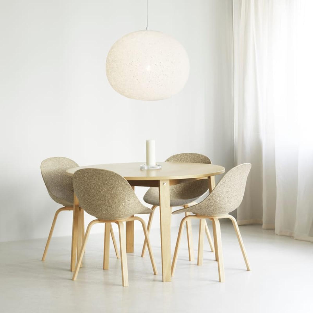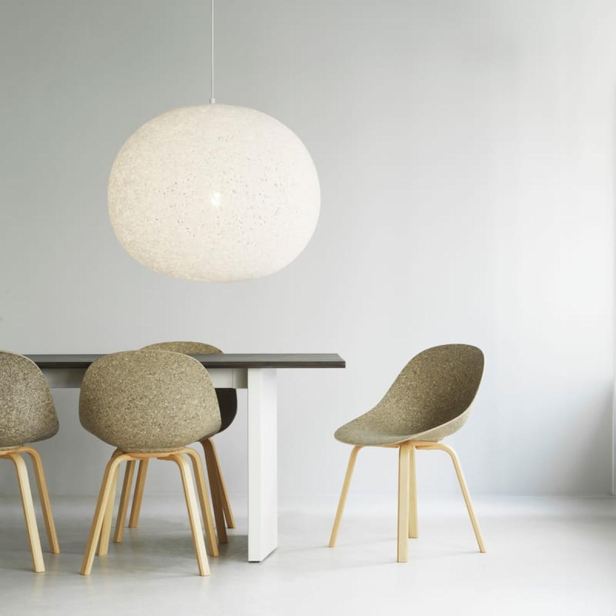 A chair designed for innovation and circularityFocused on innovation and sustainability, the Mat project aims to create a Shell chair using materials with minimal environmental impact. Its Shell is made from Hemp or Eelgrass, a Navy algae, offering an ecological alternative to plastic. The Mat range is fully in line with the 3. R principle: reduce, reuse and recycle. A long-term research projectDesigned by Danish studio Foersom & Hiort-Lorenzen, the Mat chair is the fruit of decades of research. Back in the late 90s, Peter Hiort-Lorenzen explored the idea of a natural material to replace plastic. After numerous tests, Hemp proved to be the ideal solution for combining strength, stability and durability. Innovative, eco-responsible productionThe Shell of the Mat chair is made from Hemp and Eelgrass fibers, ground and sealed with a recyclable binder. This mixture is compressed into slabs, then shaped to create the Chair Shells. Each edge is carefully sanded and the surface treated with VOC-free Linseed oil, guaranteeing a resistant, natural finish. Materials with a low ecological footprintHemp grows quickly, requires little water and absorbs CO2. Harvested by local farmers, it puts to good use a by-product that is usually thrown away. Eelgrass, traditionally used for roofing in Denmark, is collected only after it has run aground naturally, thus preserving Navy ecosystems. Circular designWaste from the manufacture of Shells is crushed and reused to produce new chairs, ensuring zero-waste production. What's more, every component of the Mat Chair can be disassembled and recycled. Minimalist, ergonomic aestheticsCombining comfort and simplicity, the Shell rests on an FSC-certified solid Beechwood Legs. Its sleek design blends easily into all types of interiors. Why choose the Mat chair? - Natural, renewable materials (hemp and eelgrass) - Eco-responsible, zero-waste manufacturing - Ergonomic Shell and meticulous finish - Legs in solid FSC Beechwood - 100% recyclable and dismountable - Timeless, minimalist design With the launch of the Mat chair, Normann Copenhagen is pushing back the boundaries of eco-design and paving the way for more sustainable furniture. In detail: Variation : Alga (dark) / Beechwood Base, legs Brand : Normann Copenhagen Designer :Johannes Foersom - Peter Hiort-Lorenzen Type : Chair Colour :Shell: Navy Alga (Light) - Base, legs: Natural beechwood Material : Shell:Eelgrass leaves (seaweed) mixed with hemp fibers, ground and sealed with a fully recyclable binder (only eelgrass leaves that naturally wash up on the beaches of the Danish coast are used) - Shell sanded and oiled by hand - Feet: FSC-certified beechwood Dimensions :W 51.5 x D 53 cm x H 79 cm - Seat : H 45 cm Weight : 9.9 lb Characteristics : Minimal environmental impact - Ecological material using natural resources of local origin, sustainable and extremely renewable - Zero waste production (manufacturing waste reused) - Completely dismountable and recyclable - Innovative technology (many years of research) - Solid and durable, easy maintenance: clean with a damp cloth. Show less