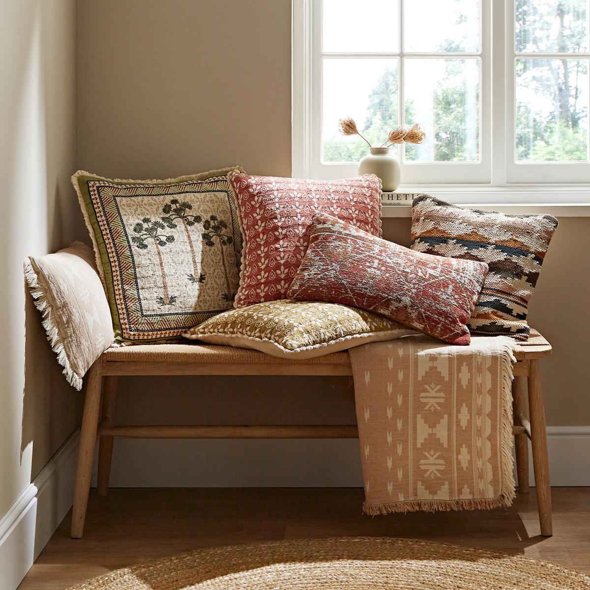 The Matalasse Block Print Cushion is a versatile piece that adds a subtle touch of pattern and texture. I love its earthy tone and understated design, which make it easy to mix and match with larger, neutral-toned sofas or throws. It works particularly well in bohemian, coastal, or Scandinavian interiors, where its natural feel complements relaxed, layered looks. For practical styling, try pairing it with neutral or linen cushions to keep the look fresh, or add a pop of colour with co-ordinating accessories. It’s a great option for bringing a cosy, tactile element to your seating area without overpowering the space.