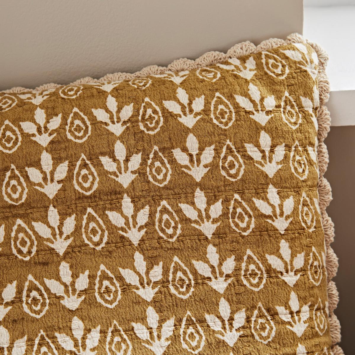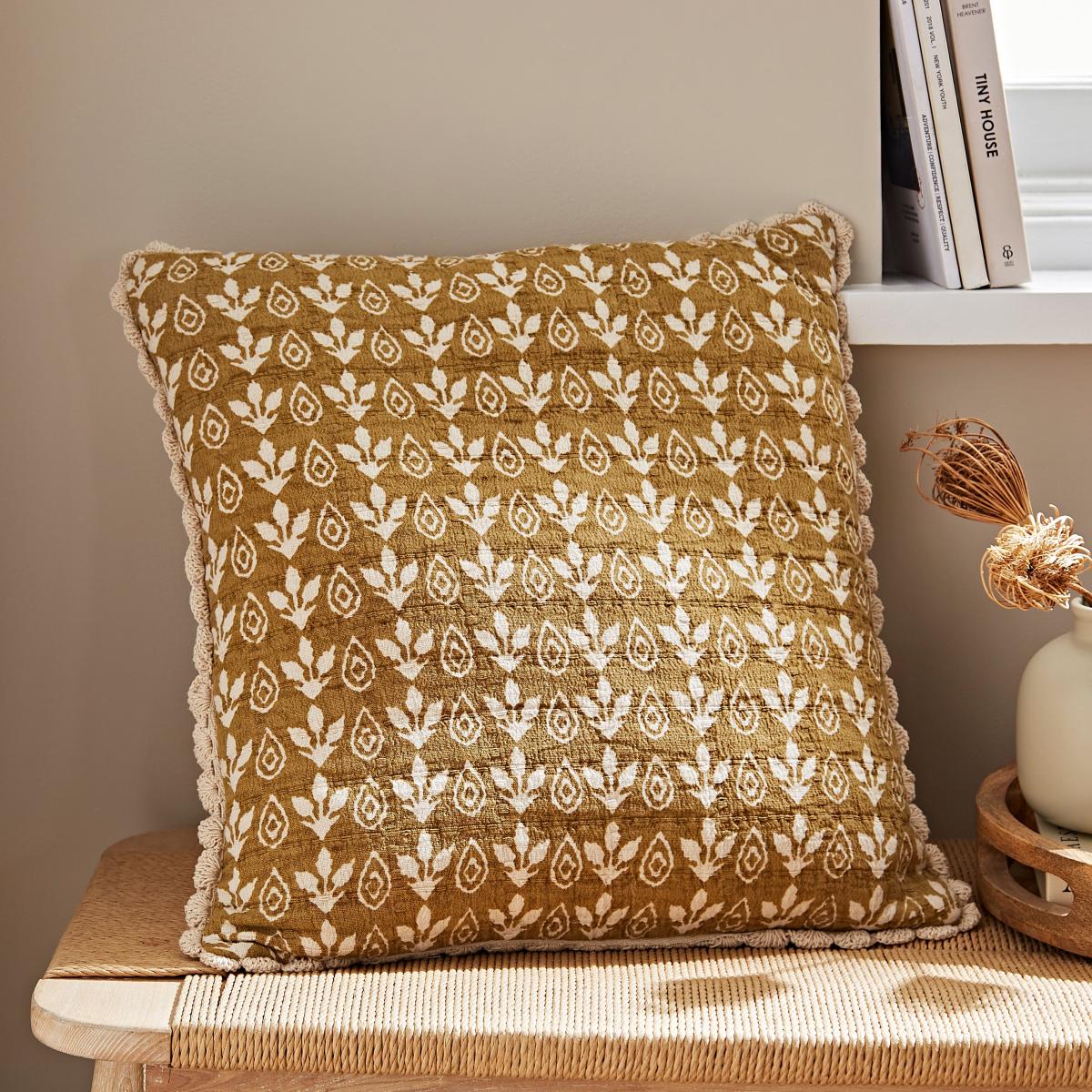 I love this block print cushion for adding a touch of understated pattern and texture to a variety of interiors. Its warm, earthy hue makes it versatile enough for both contemporary and traditional settings, while the cotton fabric ensures durability and easy maintenance. It works particularly well styled on neutral sofas or armchairs to add visual interest without overpowering the space. For a layered look, pair it with plain cushions for a balanced scheme, or mix with other prints to create an eclectic vibe. Practical styling tip: consider using it in a sunroom or a cosy reading nook to bring warmth and pattern to relaxed, inviting spaces.