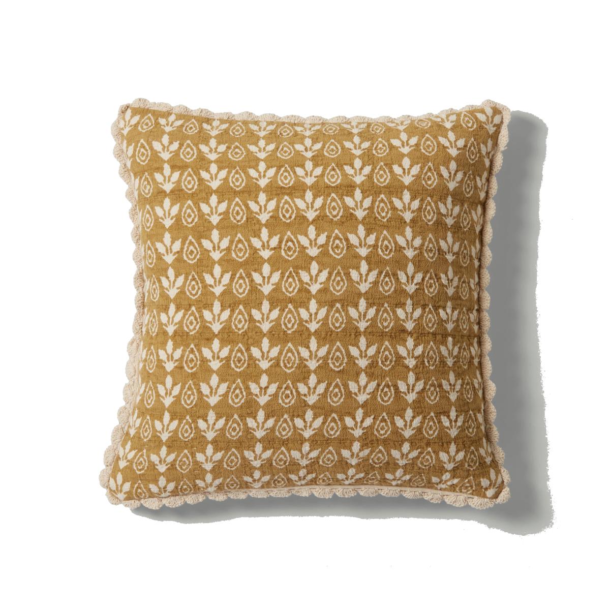 * Matelassé weave* 100% cotton* Machine washable Infuse your space with the regal allure of the Matelasse Block Print Cushion Cover. With its stunning block print, elegant matelassé weave, and zip closure for secure filling, this 100% cotton cover is both striking and practical.