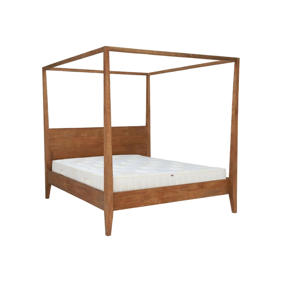 Design. Finished with reclaimed teak veneers that are full of unique character, the Matano bed frame has a warm and rustic look. A touch of old-world charm, its stunning 4-poster design can be dressed with drapes, fabrics, fairy lights, or even garlands of greenery to make it your own. Combine this four poster bed with coordinating pieces from the Matano range for effortless style.