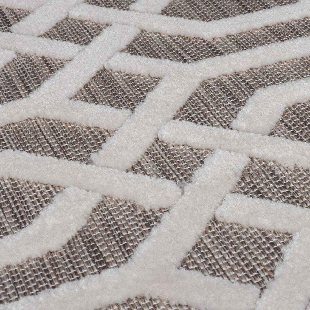 * Indoor outdoor* Stain resistant* High low textured pile The Mataro Indoor & Outdoor Geometric Patterned Round Rug is the perfect pairing of minimalist style with a cool and trendy design. This rug features a modern geometric pattern with contrasting fibres in a high-low pile. This textured style looks great both in and outside the home on balconies, patios, and decking. Made from polypropylene, this rug is designed to be durable, with stain resistance and weatherproof fibres.**Care Instructions:**Unroll your rug and leave for 24 hours during first use. Maintain your rug by shaking to remove trapped dirt and debris. Vacuum regularly with a nozzle attachment. Cut any loose fibres with scissors, do not pull. Outdoor rugs are easy care and UV resistant and can be hose cleaned, for smaller spills blot with a clean cloth and leave to dry. Rotate every few months and bring indoors in adverse weather to prolong the life of your rug. When using this rug indoors add an anti-slip to prevent slipping.