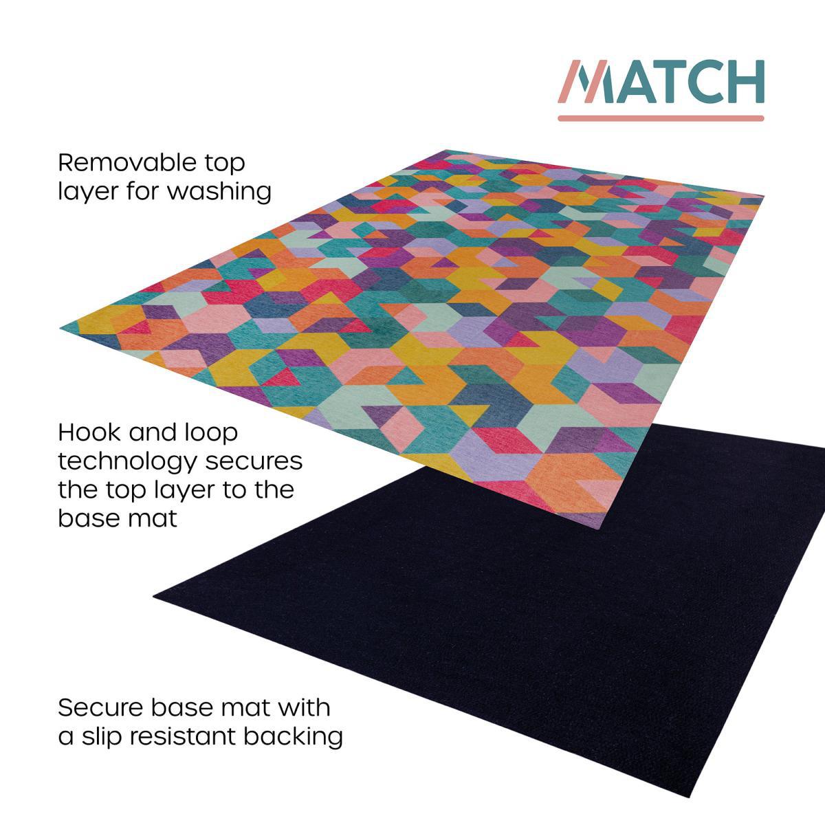 The Match Axel Geo Washable Rug adds the party element to your space. Pairing a multi-coloured palette with a busy geometric design for the ultimate playful statement. This design is perfect for all ages, from little ones to adults, with the machine washable qualities that we all love. Say hello to the new Match Washable Collection, a two-layer washable rug, perfect for on-the-go homes. Building Your Match Washable Rug. Putting your new two layer washable rug together is as easy as 1… 2… 3!. Washing your Match Washable Rug. We like to keep it nice and easy when it comes to cleaning:.