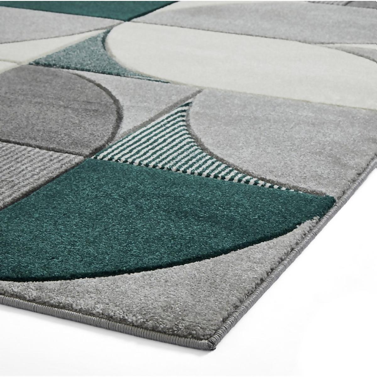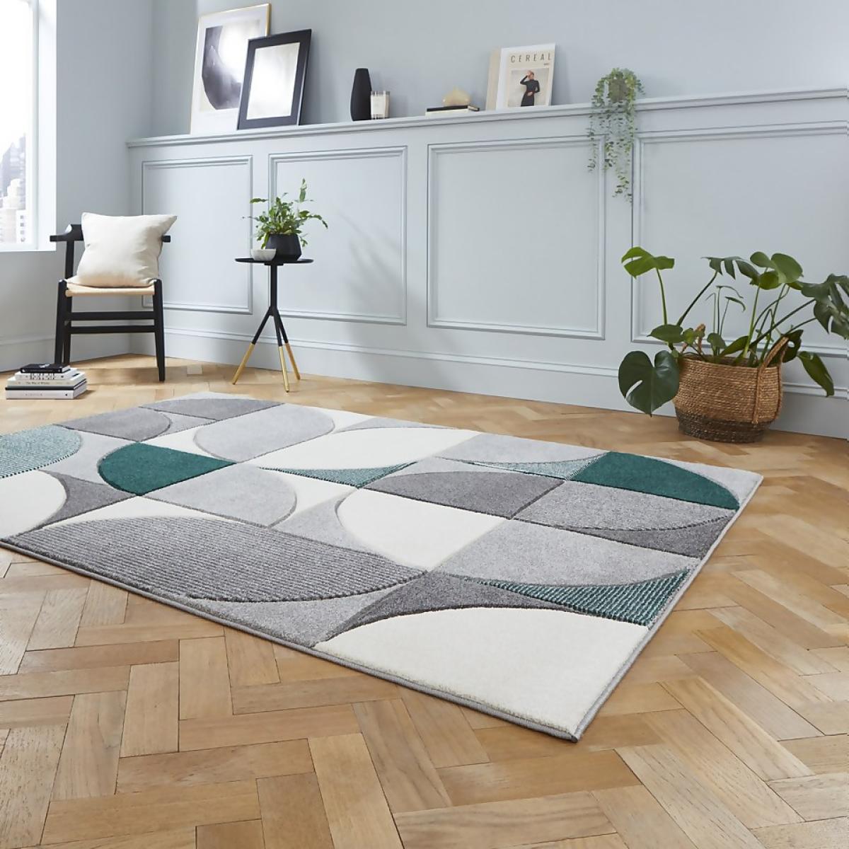The Mateo Carved Cut Circle Rug in grey and green, the perfect addition to any modern living room. Measuring 120x170cm, this rug is hand carved for a truly unique and luxurious texture. Made from durable polypropylene material, this rug is designed to withstand daily wear and tear while retaining its beauty.