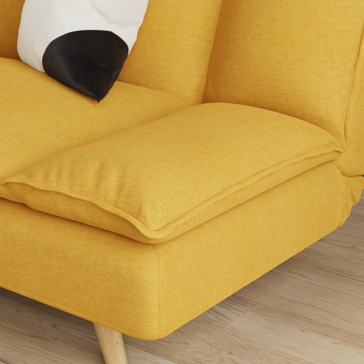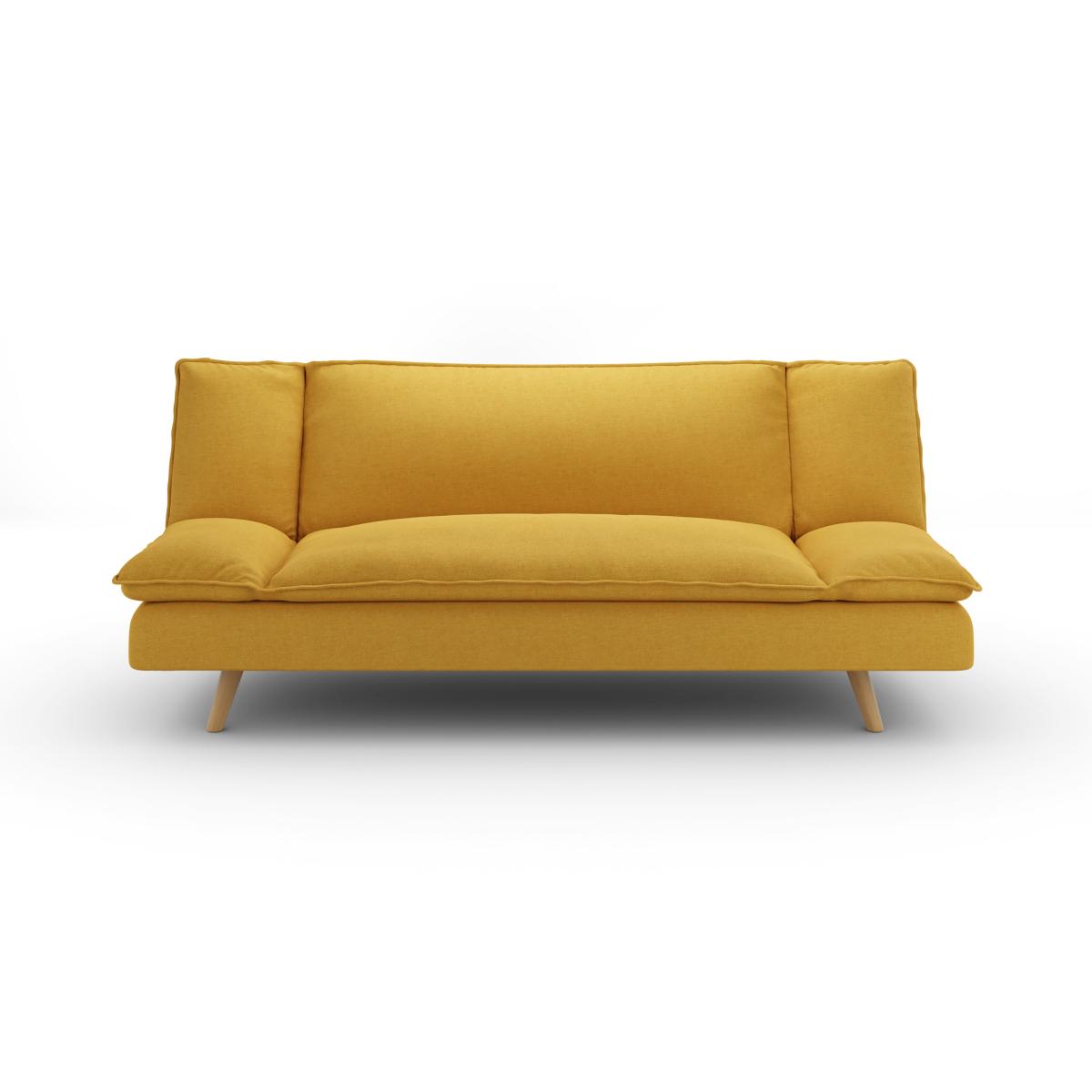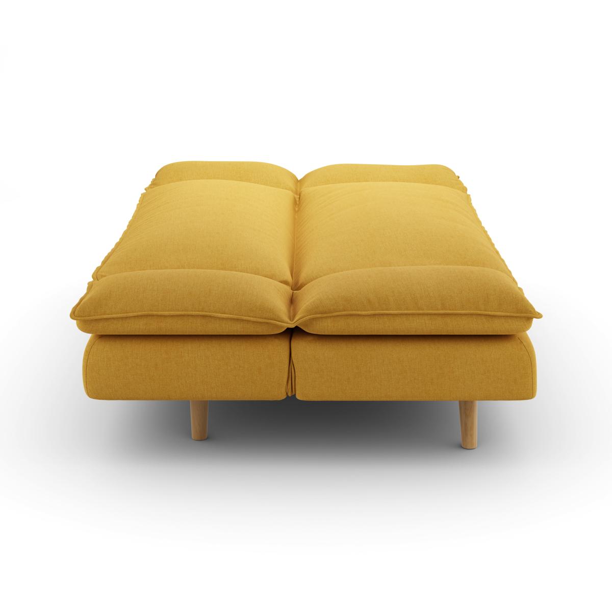 I love this sofa bed because of its bold ochre colour and versatile flatweave finish, which adds texture and warmth to contemporary and eclectic interiors. It works particularly well in living spaces where style and practicality are key-think guest rooms, studio apartments, or lounge areas that need flexible furniture. For styling tips, pair it with neutral tones and minimal accessories to let the colour stand out, or add colourful cushions and throws for a playful, layered look. Its clean lines and simple silhouette make it easy to incorporate into both modern and mid-century interiors, making it a smart choice for spaces that need a design-forward yet functional piece.