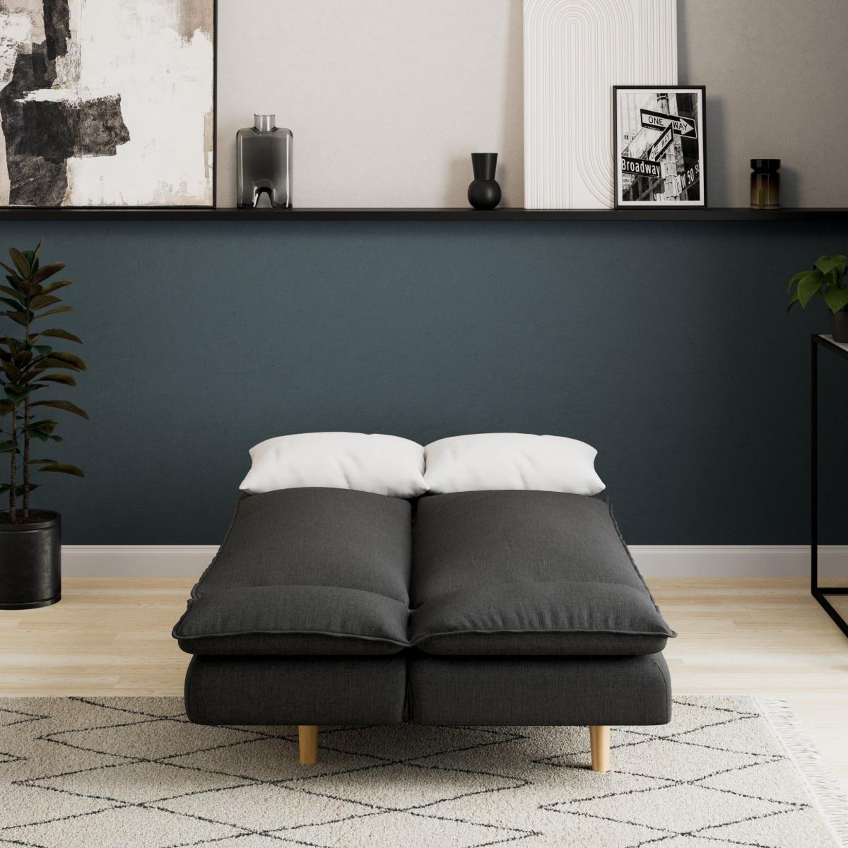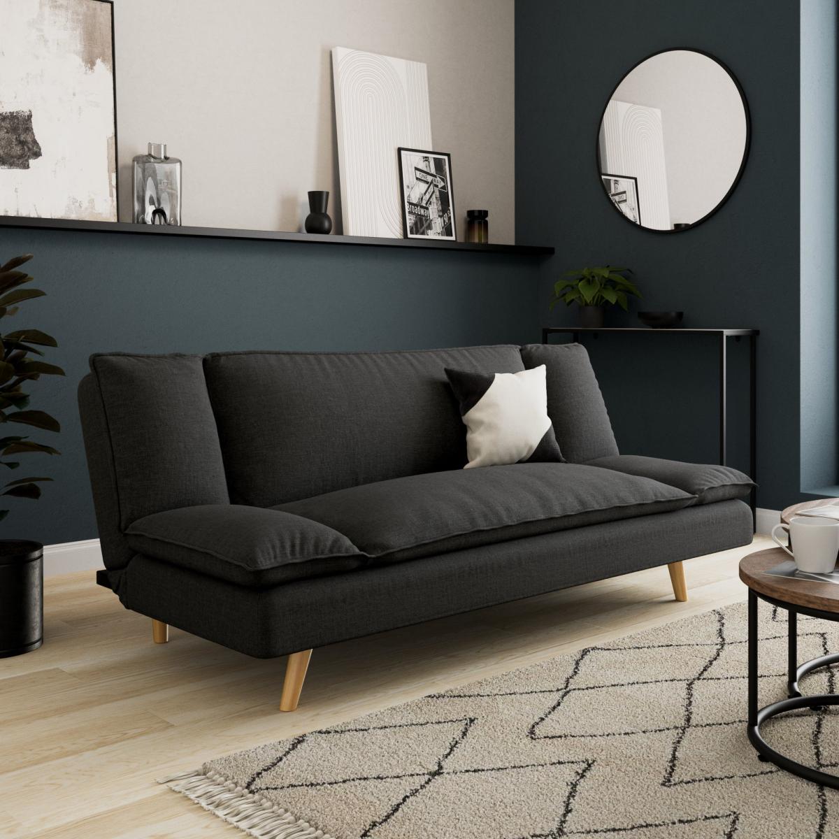 I love the Mateo Flatweave Clic Clac sofa bed for its versatile, modern look and practical design. Its charcoal colour makes it a great anchor piece in contemporary or minimalist interiors, while also fitting seamlessly into more cosy, layered schemes with textured accessories. The sofa's clean lines and neutral tone allow for easy styling with statement cushions, throws, or even a colourful bedspread when it's in bed mode. It's perfect for smaller spaces or guest rooms where functionality is key, offering a sleek seating option during the day and a comfortable bed at night. Practical tips include pairing with warm-toned accessories for contrast or keeping it monochrome for a timeless, slick aesthetic.