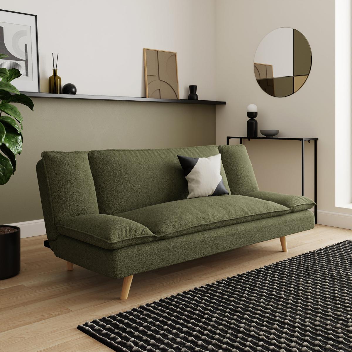 Mateo Sherpa Clic Clac Sofa Bed Olive (Green)