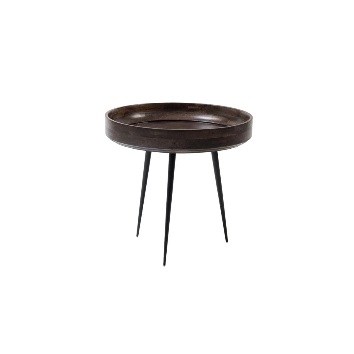 The minimal aesthetic of Scandinavian design is beautifully realised through masterful Indian craftsmanship to create the Bowl small occasional table. Designed by Ayush Kasliwal for Danish brand Mater, the Bowl range showcases and supports the traditional skills of the Kharadi, a community of wood turners based in India. Each table is made from sustainably harvested mango wood that is lathe turned to create its elegant lipped design. Supported by tapered steel legs, the Bowl range comes in a range finishes and sizes that look striking alone or in groups.