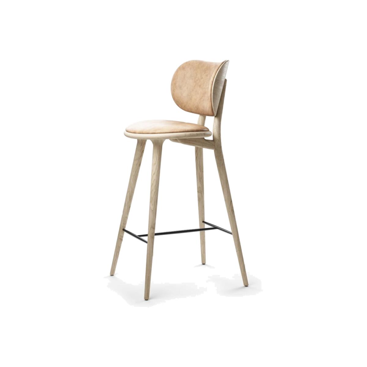 Mater Mater High Stool Backrest barstool low leather natural matt varnished oak stand