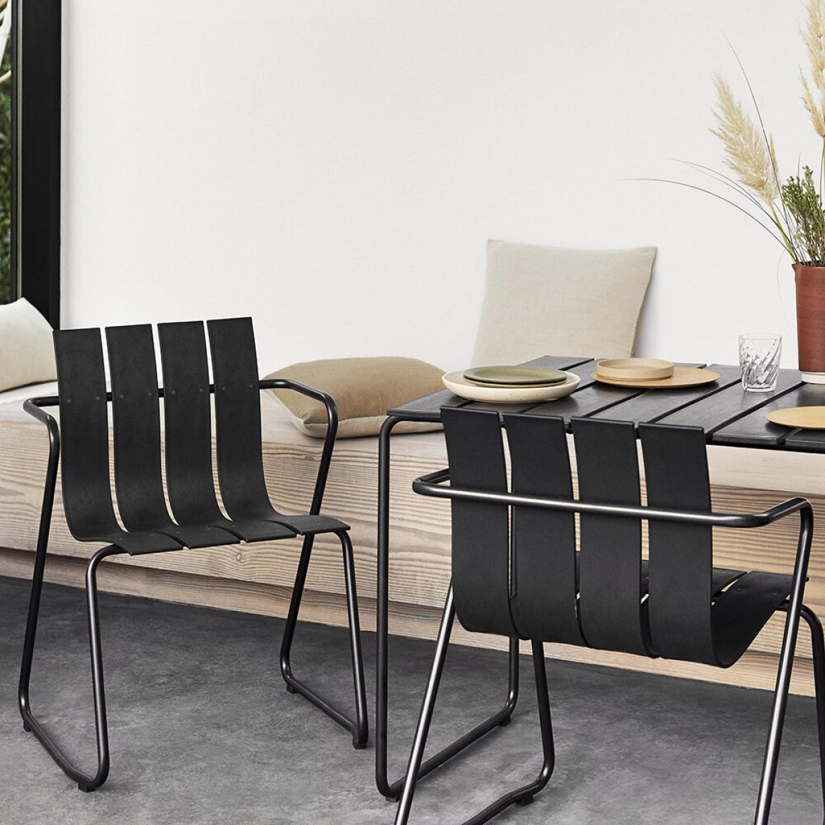Bring sustainable style into your space with this Ocean lounge chair from Mater. Crafted from recycled plastic that saves the ocean from waste, it is boasts a steel frame and a simple slatted design to suit any garden style. Pair with the rest of the collection for a coordinated look. Key features: * Material: recycled plastic, steel * Dimensions: H67xW72xD63cm * Seat height: 39cm * Armrest height: 55cm * Black colour * Simple slatted design * Steel frame * Designed by Joergen & Nanna Ditzel * Made from recycled ocean plastics * Each chair saves the ocean from 1.2kg of plastic waste