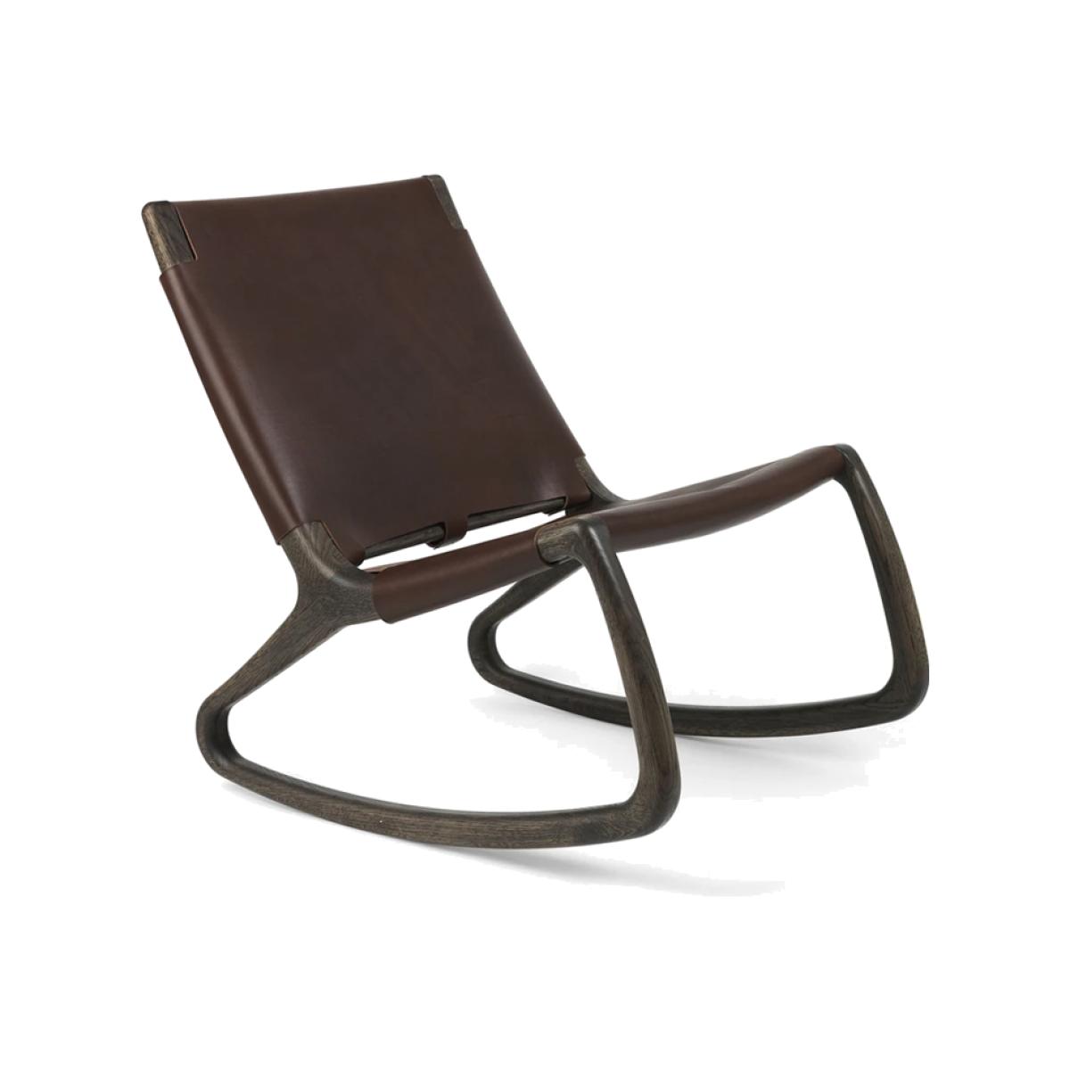 Mater Rocker swinging chair leather dark brown sirka grey oak stand