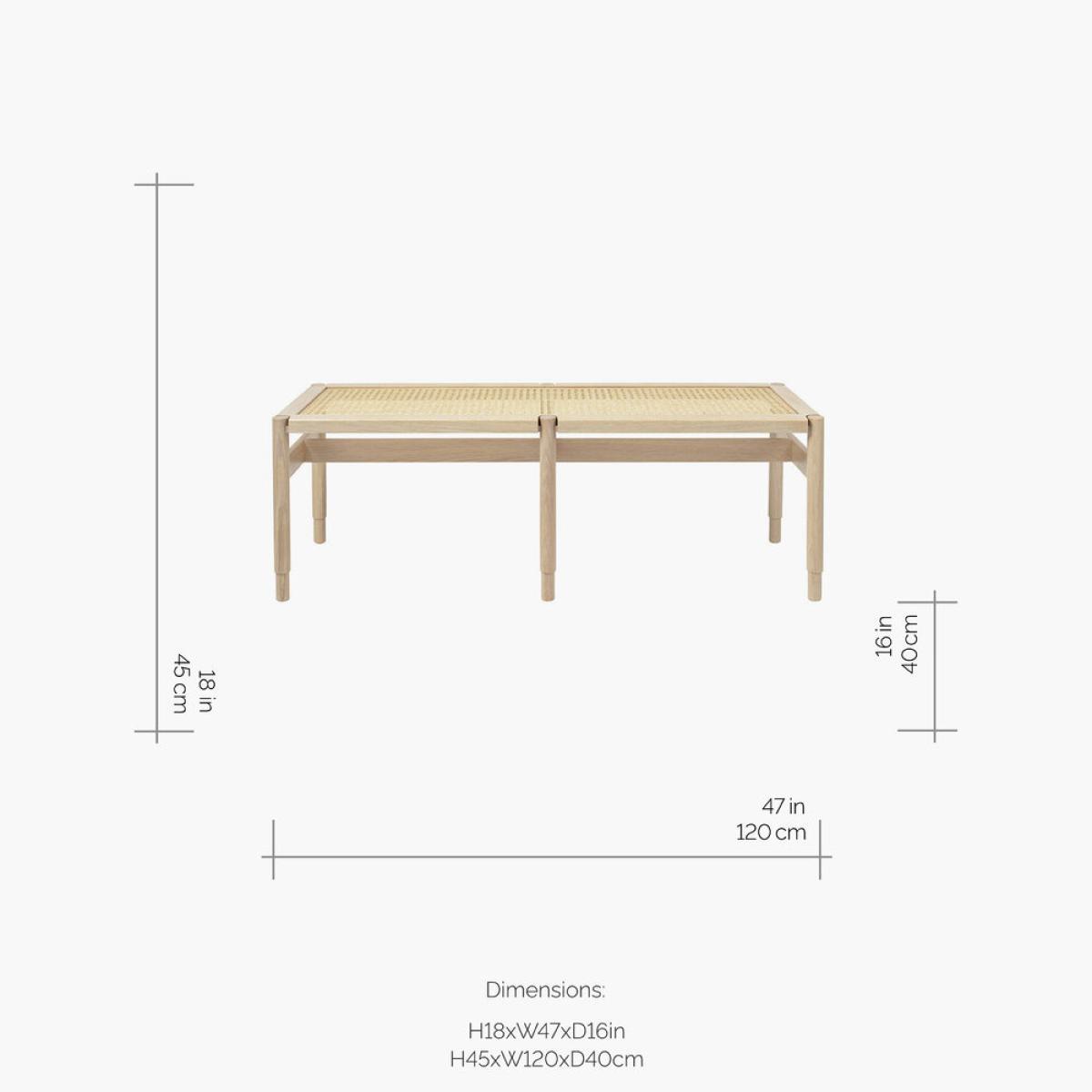 This Winston bench from Mater is a wonderful addition to any home. Named after Winston Churchill, it's been crafted from FSC certified oakwood and finished with canework made by a proud 3rd generation Danish wicker workshop. Perfect as additional seating at the dining table, in the hallway or at the end of your bed. Key features: * Bench * Material: FSC certified oakwood, canework * Dimensions: H45xW120xD40cm * Cane seat * Designed by Eva Harlou
