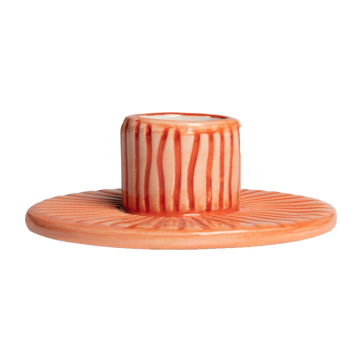 I love this bright orange candle holder for adding a pop of colour to both contemporary and eclectic schemes. Its size makes it versatile - perfect for centrepieces or to brighten up a side table. It works particularly well styled with neutral palettes, where its vivid hue can really stand out, or mixed with other colourful accents for a lively, layered look. Practical styling tips include grouping it with other candle holders of varying heights for visual interest, or using it as a focal point on a mantel or shelf. Its bold design and colour make it a great piece to inject personality into everyday interiors.