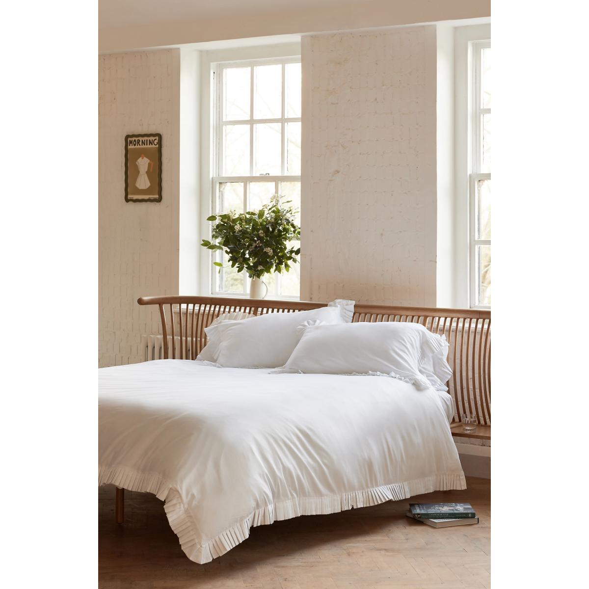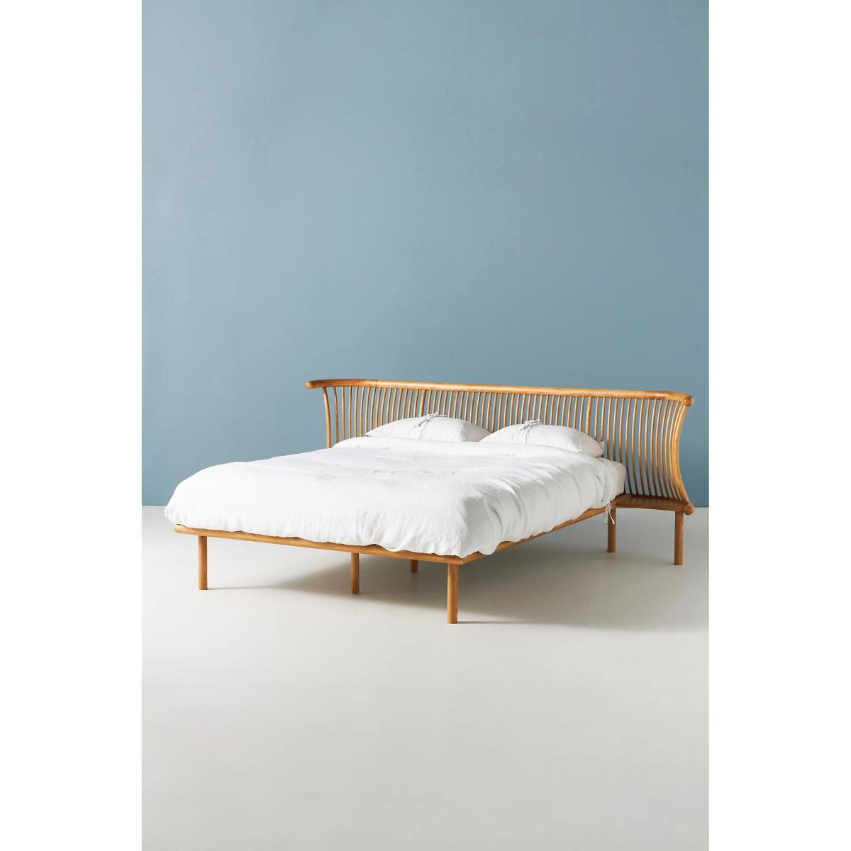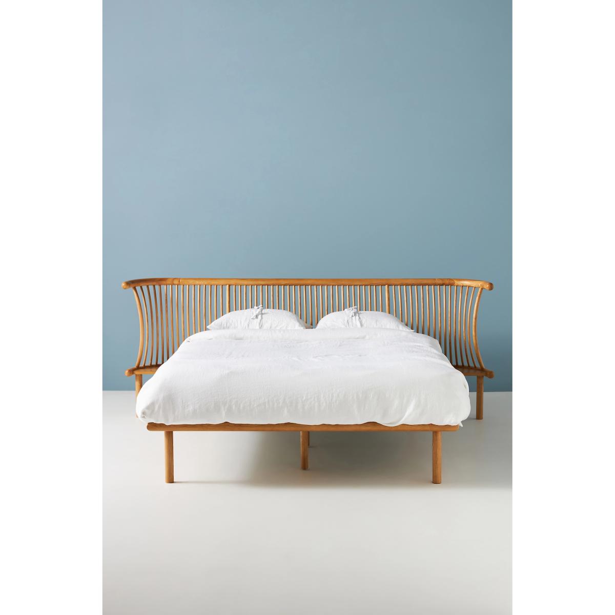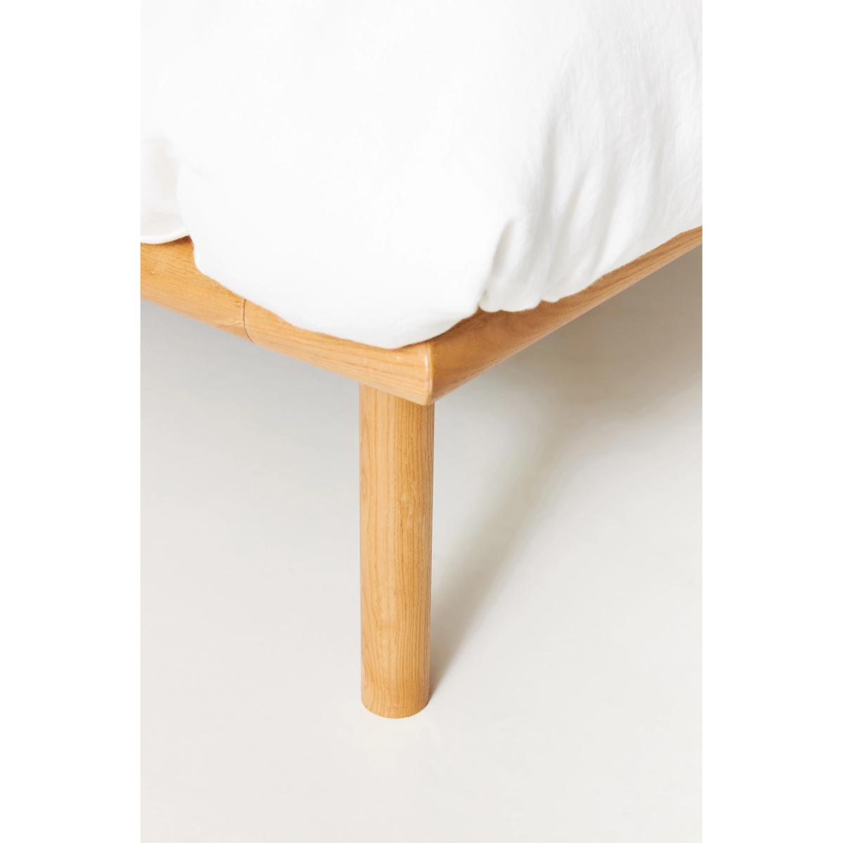 Taking cues from Shaker-style furniture, this bed features an exquisitely curved headboard that extends to flanking nightstands. Left in a natural ash wood finish, each perfectly placed spindle puts sheer craftsmanship on display. * Furniture pieces weighing over 30kg include delivery to your room of choice and packaging removal * Solid ash wood veneer bed reinforced with engineered hardwood featuring flanking nightstands * Sealed with clear lacquer for protection * Slight variation in natural wood texture may occur * Easily assembled upon delivery * Legs are removable * Wipe clean with soft cloth; avoid using chemical cleaners * Imported