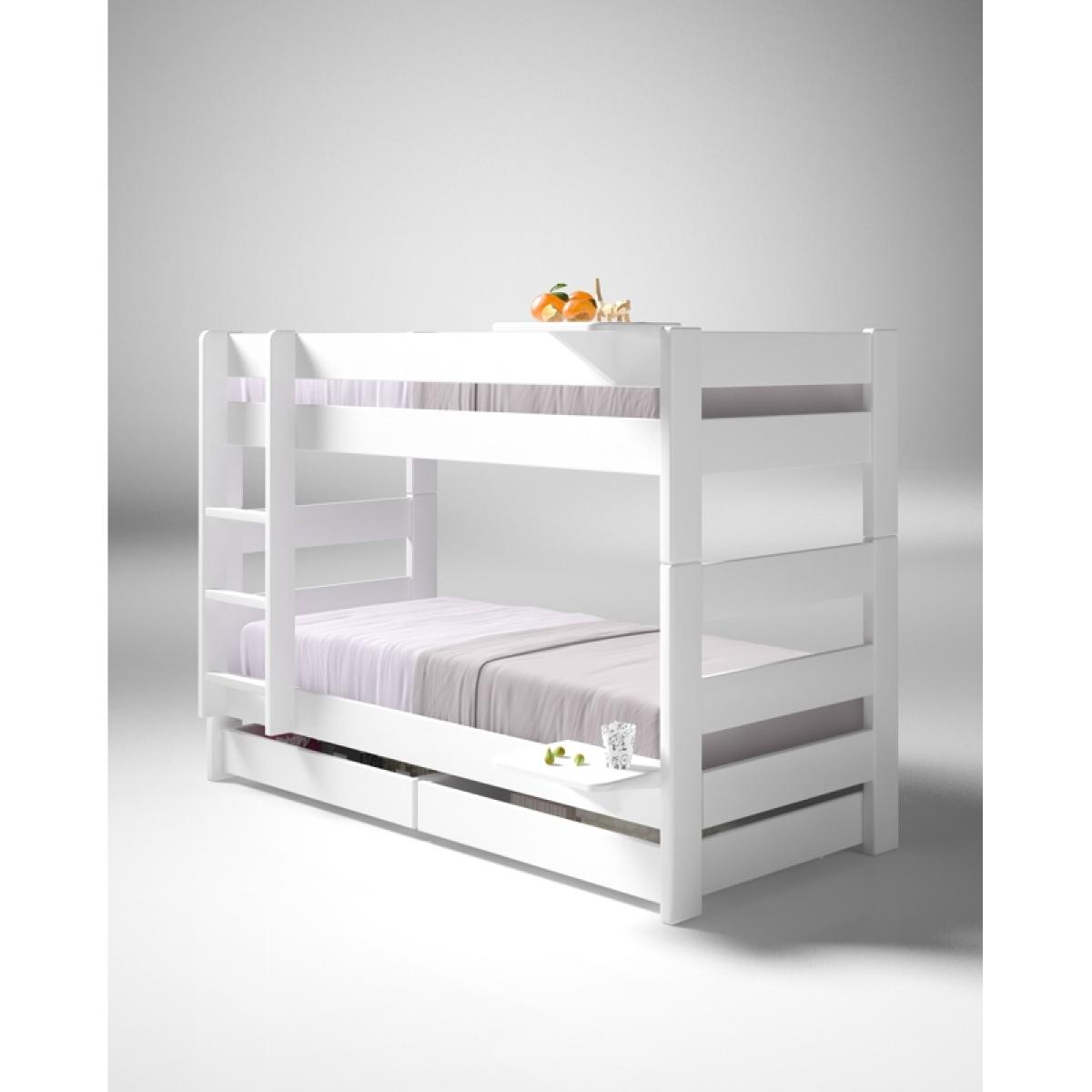 The sleek design of the Mathy By Bols Luxury 149cm High Dominique Bunk Bed will effortlessly add style to your childs bedroom. Handmade in Belgium, this kids bunk has complimentary components so you can create a bed to suit your family needs. With the choice of a trundle drawer that can be used as a guest bed - perfect for party sleepovers! Or if extra storage is an essential why not choose the pair of storage drawers, ideal for clothes, bedding or toys. What's more is that this versatile bunk bed can be converted into 2 single beds! This luxury exquisitely made kids bed is available in an astonishing range of 26 gorgeous colours to match any palette or theme.