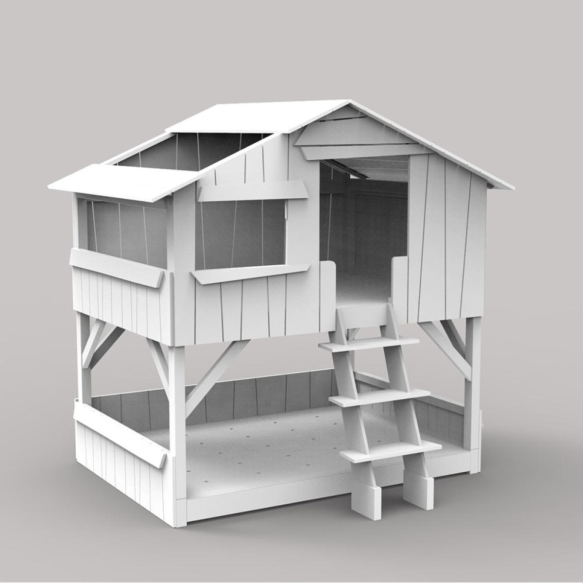 Our best selling Mathy By Bols Treehouse Bunk Bed is now available in a choice of 3 larger sizes, small double, double & king! Every child hasdreamt, at least once in their life, of a house perched in the treesin which to sleep, play, invent, dream, hide away, find oneself, grow, study,read, party, lounge in pyjamas… in other words live! Just imagine your child's face when you unveilthis incredibly special addition to their bedroom - bedtime will never be the same again! This is the stuff dreams are made of!Each bed is handmade to order in Belgium and is therefore unique and one of a kind. Available in a super choice of colours.