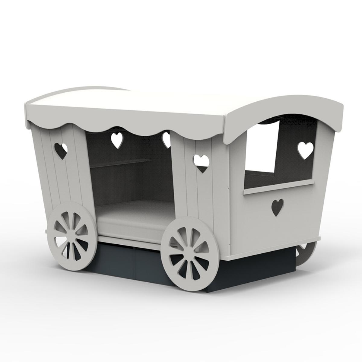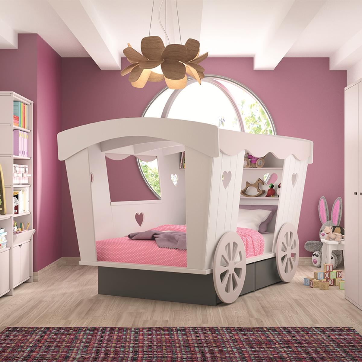 The Carriage Bed by Mathy by Bols is a fantastic bed that would appeal to those who dream of travelling the kingdom like royalty! Made to order, this unique kids bed from talented Belgian artisans is available in a choice of 26 colours, what's more, this fabulous bed can be adapted into a standard small double bed without the carriage roof when the years pass and the dream of marrying a prince are no longer her cup of tea! With so many options and colours to choose from, this beautiful bed is the perfect choice for any child but especially one who wishes to dress in sparkly slippers and be taken to the ball by a magic pumpkin!.