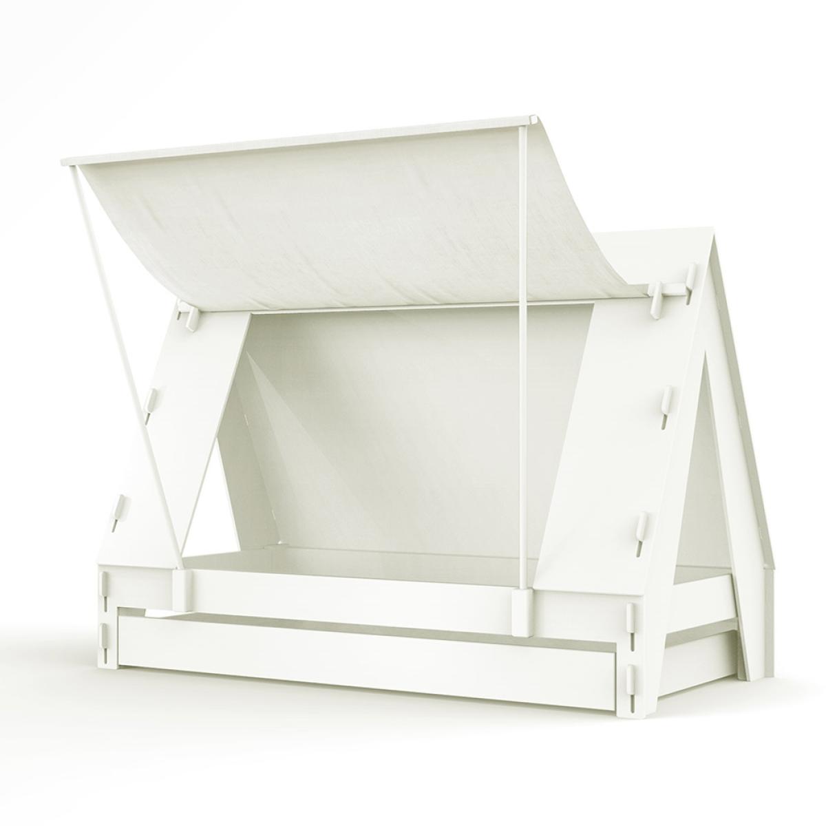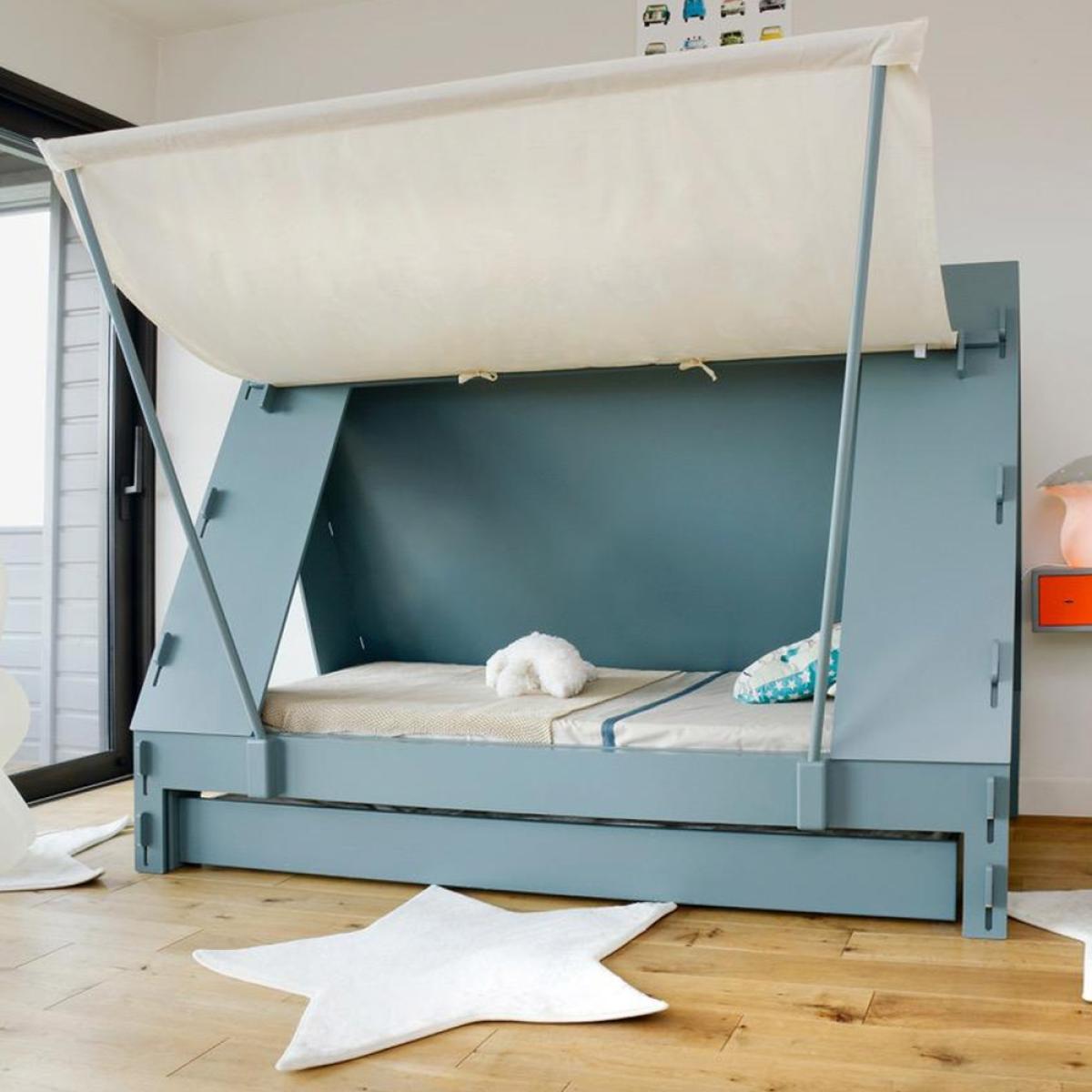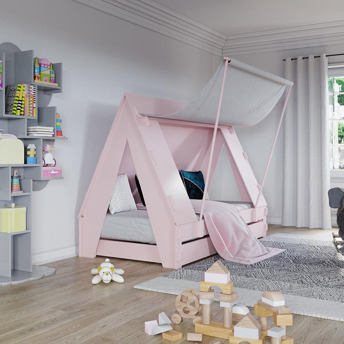 No need to be a boy scout or girl guide to enjoy the fun of camping every day! This awesome Children's Tent Cabin Bed with Trundle Drawer by Mathyby Bols, available in 26 colours, serves both as somewhere to sleep and a cosy space where children can give full rein to their imagination. One eveningthey might be in the country, another at the seaside and yet another in the mountains. Where will youryoung globe-trotters travel in tomorrow’s dreams?The cloth side wall opens up as a canopy which is held up by 2 poles. It can easily be taken down, the cloth rolled up andfastened with strips. Perfect for keeping out mum and dad, or annoying brothers and sisters at playtime! With the included trundle drawer you can have the option to add a trundle mattress to create a perfect sleepover bed - or keep as a storage drawer for storing away bedding or clothes.