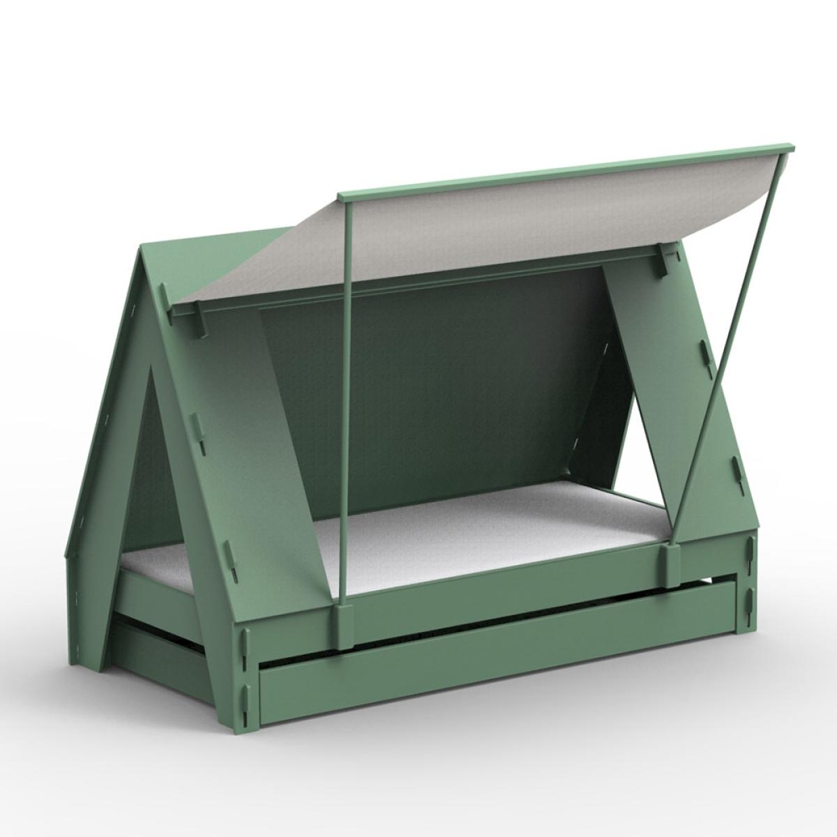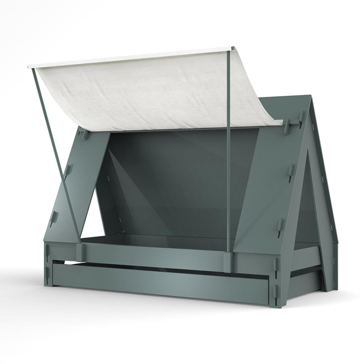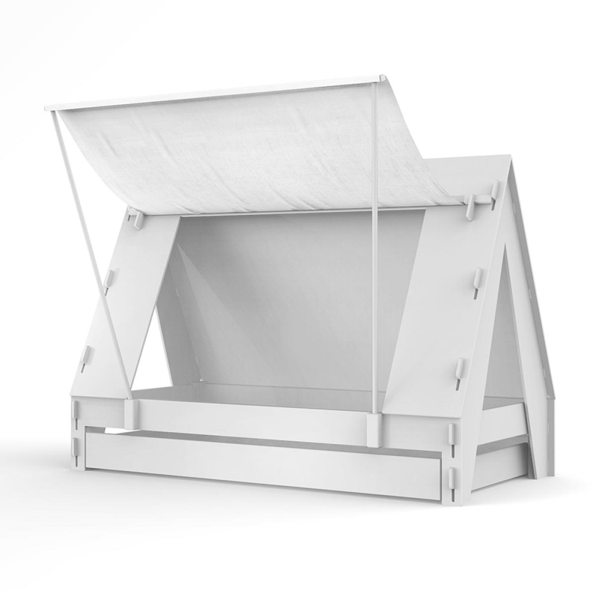 No need to be a boy scout or girl guide to enjoy the fun of camping every day! This awesome Children's Tent Cabin Bed with Trundle Drawer by Mathyby Bols, available in 26 colours, serves both as somewhere to sleep and a cosy space where children can give full rein to their imagination. One eveningthey might be in the country, another at the seaside and yet another in the mountains. Where will youryoung globe-trotters travel in tomorrow’s dreams?The cloth side wall opens up as a canopy which is held up by 2 poles. It can easily be taken down, the cloth rolled up andfastened with strips. Perfect for keeping out mum and dad, or annoying brothers and sisters at playtime! With the included trundle drawer you can have the option to add a trundle mattress to create a perfect sleepover bed - or keep as a storage drawer for storing away bedding or clothes.