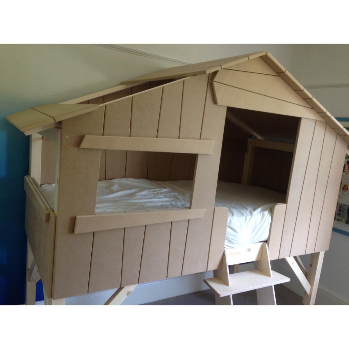 Every child hasdreamt, at least once in their life, of a house perched in the treesin which to sleep, play, invent, dream, hide away, find oneself, grow, study,read, party, lounge in pyjamas… in other words live!This fabulous Children's Treehouse Bunkbed from Mathy By Bols is the perfect way tocreate a truly magical bedroom for your kids. Just imagine your child's face when you unveilthis incredibly special addition to their bedroom!Bedtime will never be the same again! This is the stuff dreams are made of!Each bed is handmade to order in Belgium and is therefore unique and one of a kind. Available in 26 colours, there is a Mathy By Bols Treehouse Cabin Bed to suit every little pixie.