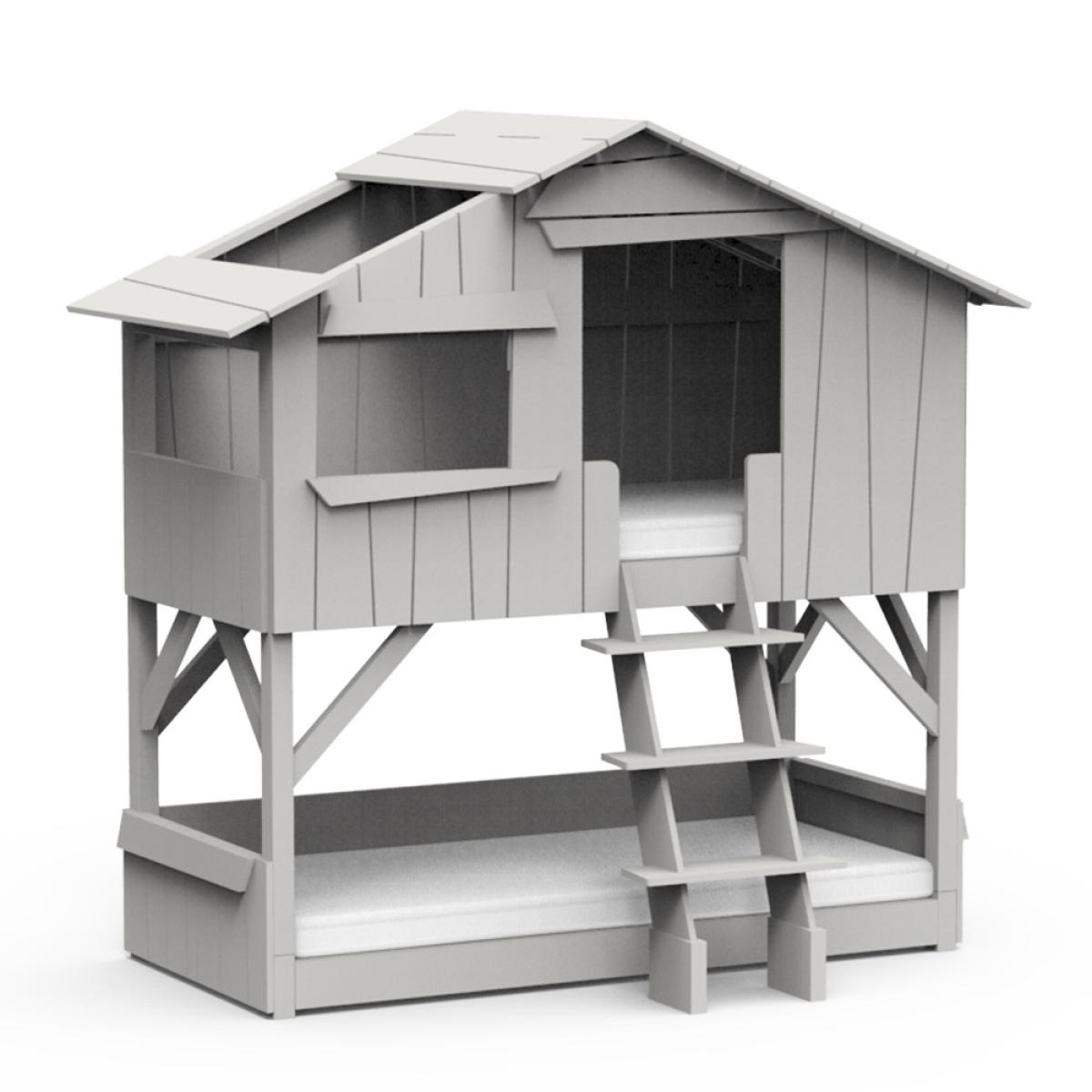 This fabulous Children's Treehouse Bunkbed from Mathy By Bolsis the perfect way tocreate a truly magical bedroom for your kids. Every child hasdreamt, at least once in their life, of a house perched in the treesin which to sleep, play, invent, dream, hide away, find oneself, grow, study,read, party, lounge in pyjamas… in other words live! Just imagine your child's face when you unveilthis incredibly special addition to their bedroom - bedtime will never be the same again! This is the stuff dreams are made of!Each bed is handmade to order in Belgium and is therefore unique and one of a kind. Available in a choice of 26 colours, there is a Treehouse Cabin Bunk Bed to suit every little pixie.