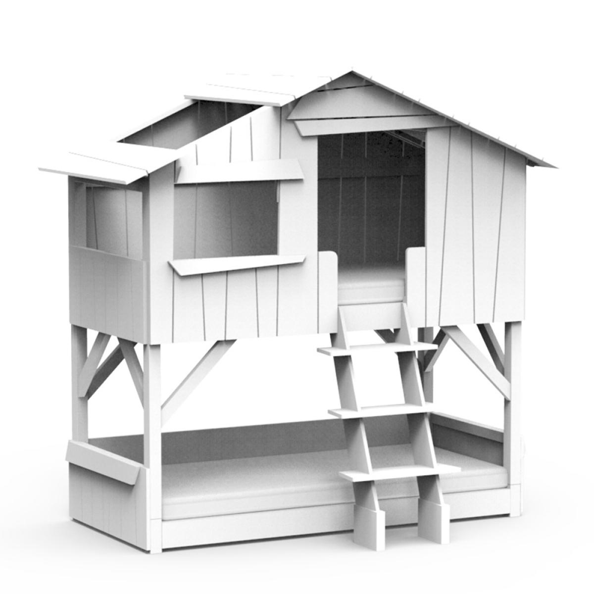 This fabulous Children's Treehouse Bunkbed from Mathy By Bolsis the perfect way tocreate a truly magical bedroom for your kids. Every child hasdreamt, at least once in their life, of a house perched in the treesin which to sleep, play, invent, dream, hide away, find oneself, grow, study,read, party, lounge in pyjamas… in other words live! Just imagine your child's face when you unveilthis incredibly special addition to their bedroom - bedtime will never be the same again! This is the stuff dreams are made of!Each bed is handmade to order in Belgium and is therefore unique and one of a kind. Available in a choice of 26 colours, there is a Treehouse Cabin Bunk Bed to suit every little pixie.