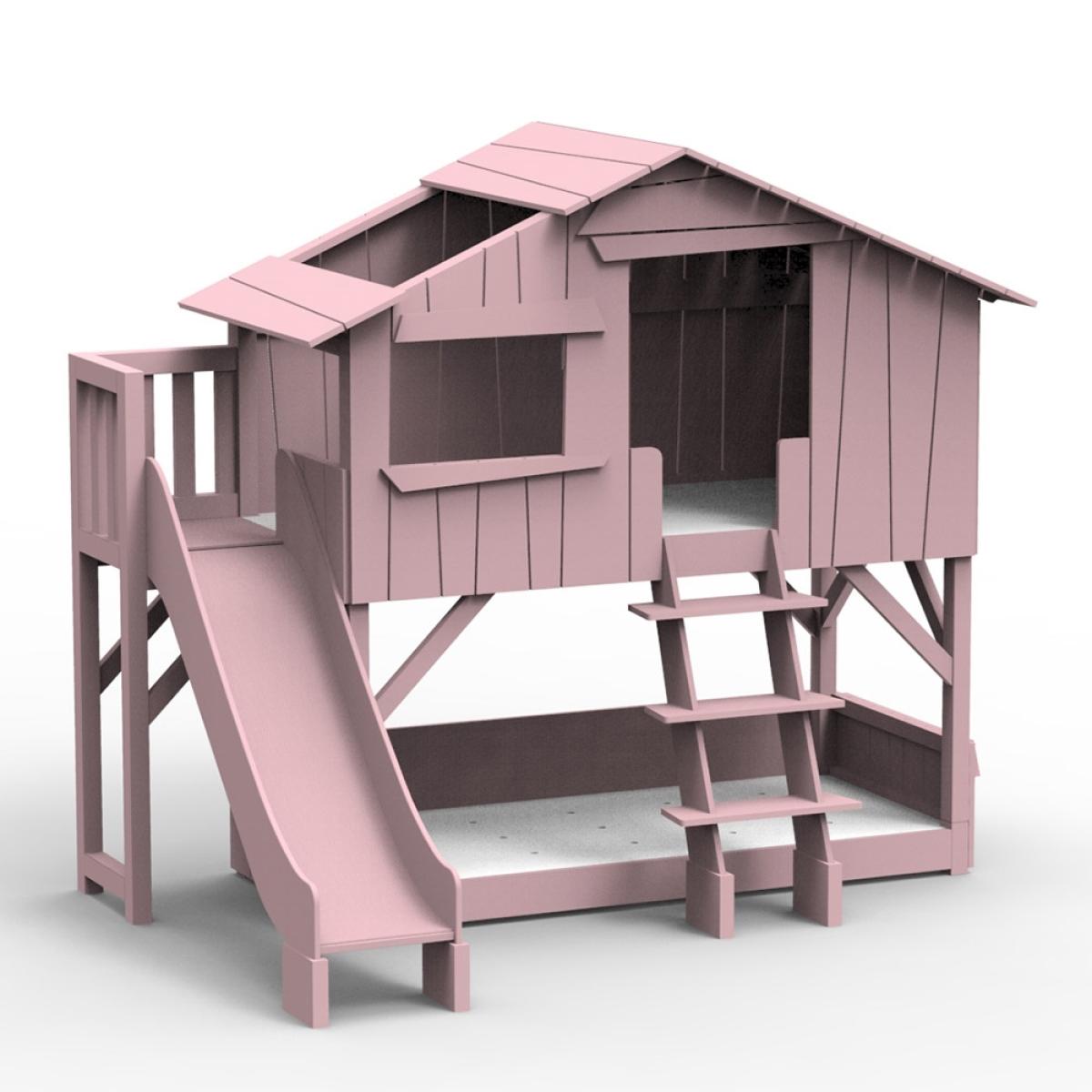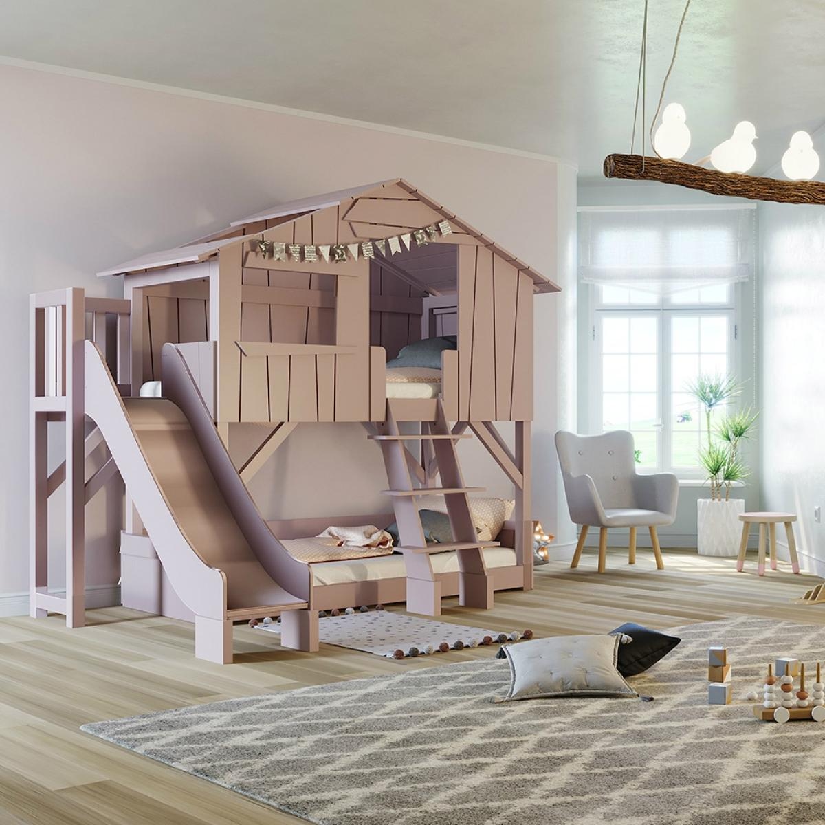 Create a playful bedroom for your child with the new Mathy By Bols Treehouse Bunk Bed, featuring a slide & platform. Every child has dreamt, at least once in their life, of a treehouse bunkbed with its very own slide in which to sleep, play, hide away, read and now they can enjoy the thrill of whizzing down a slide every morning! This is the stuff dreams are made of! Each Treehouse Bunk Bed with Slide is handmade to order in Belgium and is therefore unique and one of a kind. Available in 26 colours, there are other Treehouse options, including a single cabin bed.