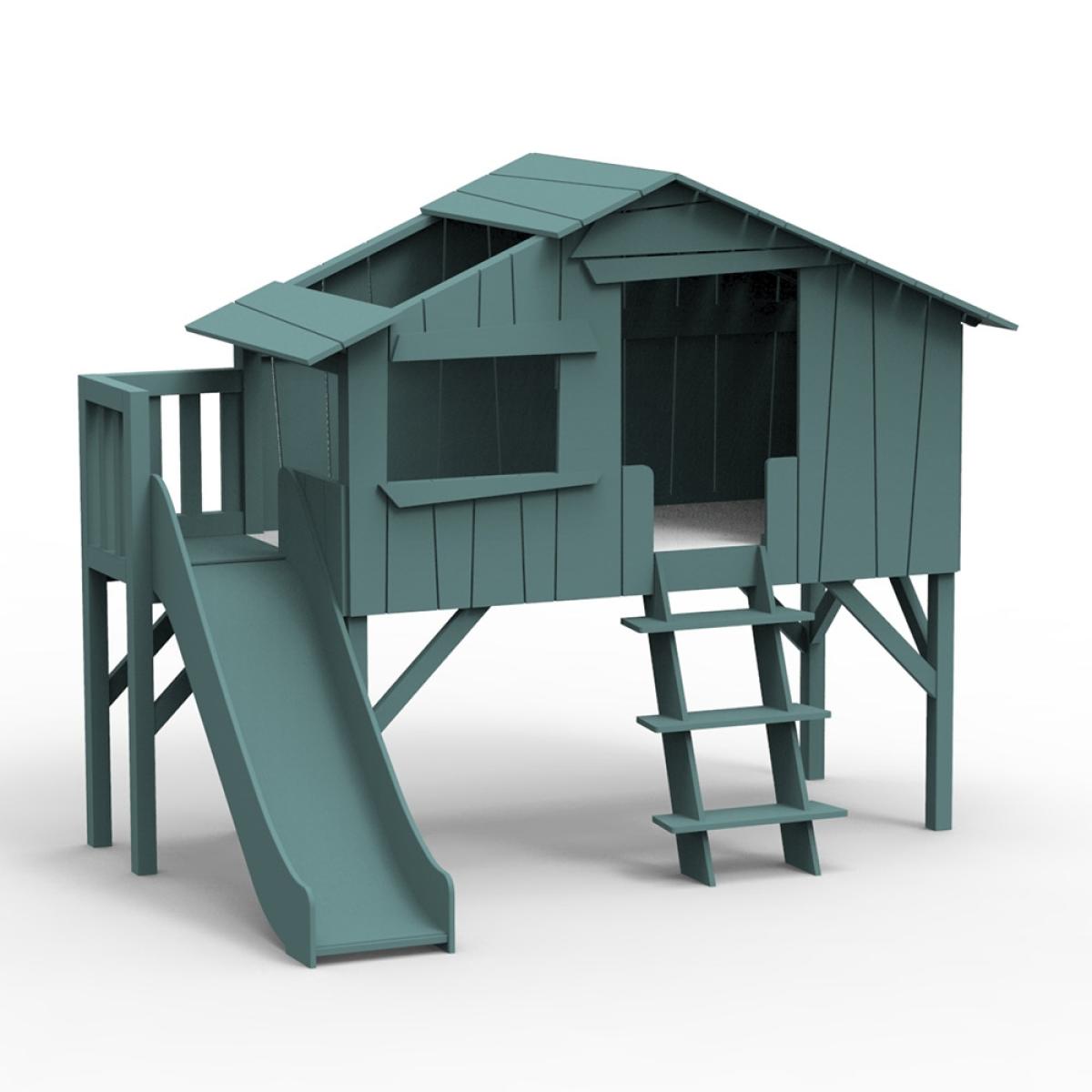 Mathy by Bols Treehouse Cabin Bed with Slide & Platform - Mathy Powder Blue