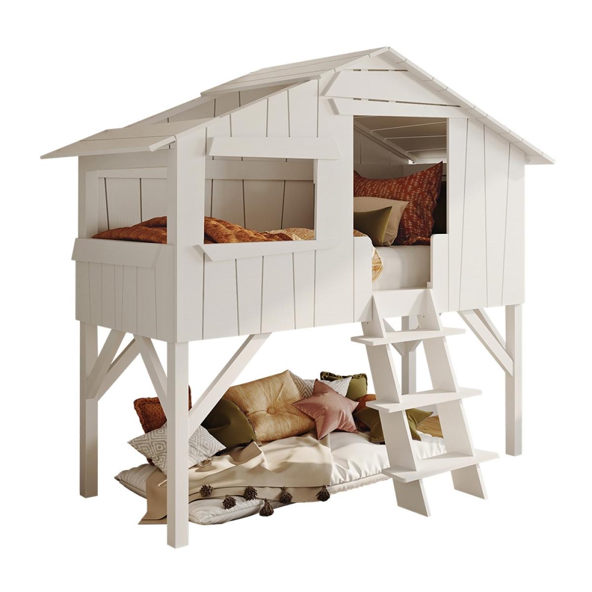 This fabulous Children's Loft Style Treehouse Cabin Bed from Mathy By Bols is the perfect way to create a truly magical bedroom for your kids. Every child has dreamt, at least once in their life, of a house perched in the trees in which to sleep, play, invent, dream, hide away, find oneself, grow, study, read, party, lounge in pyjamas… in other words live! Just imagine your child's face when you unveil this incredibly special addition to their bedroom - bedtime will never be the same again! This is the stuff dreams are made of! The space underneath can be used for storage space or fill it with bean bags for a fantastic play den. It's just waiting for all the adventures your little ones can dream up! Each bed is handmade to order in Belgium and is therefore unique and one of a kind. Available in a choice of 26 colours, there is a Single Treehouse High Sleeper Bed to suit every little pixie. This bed is also available as a bunk bed.