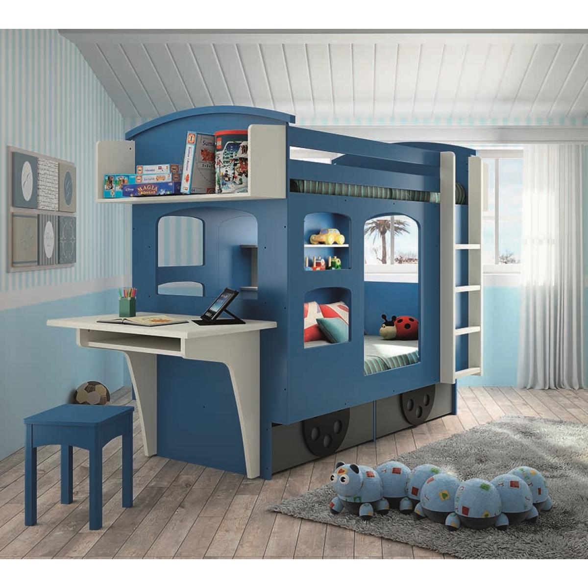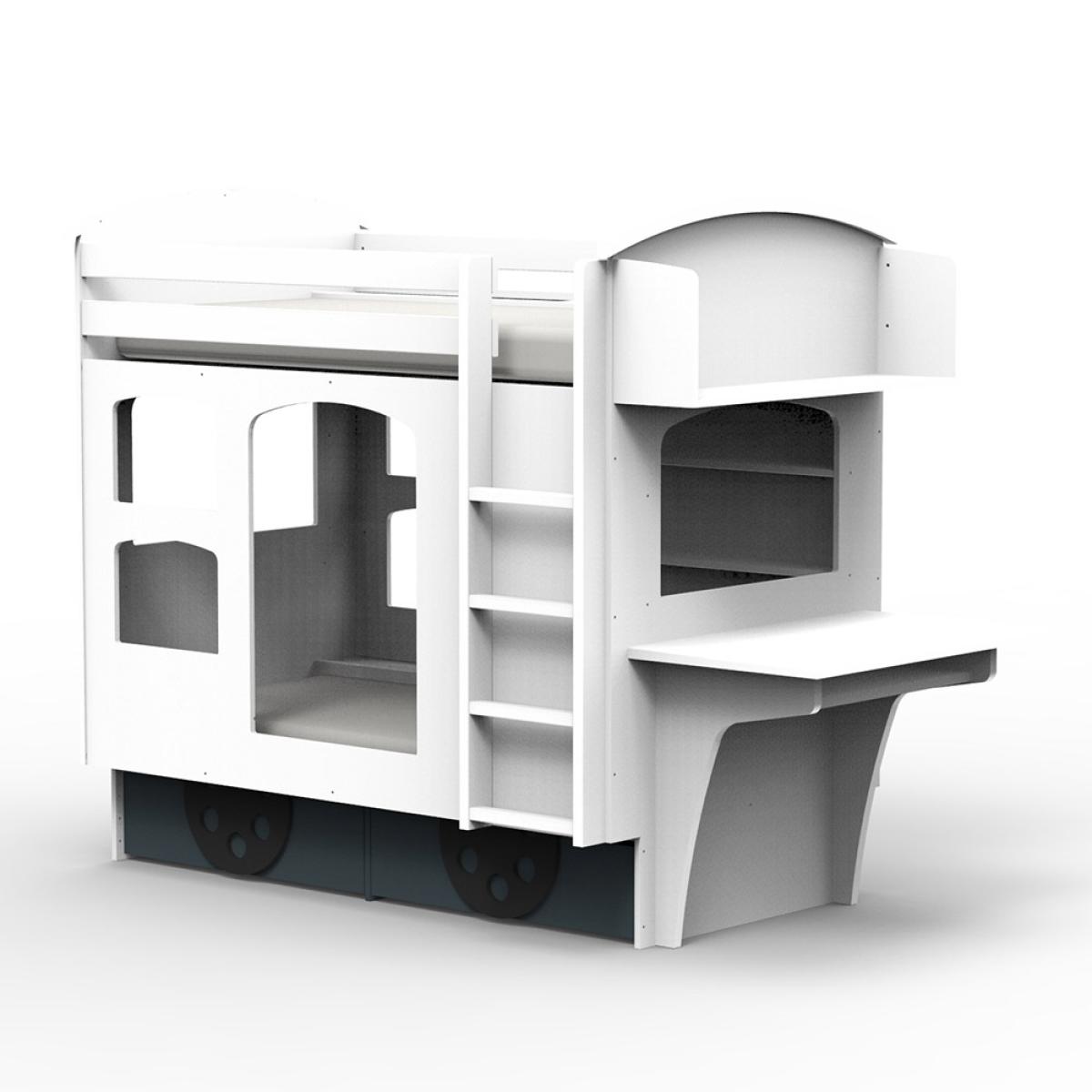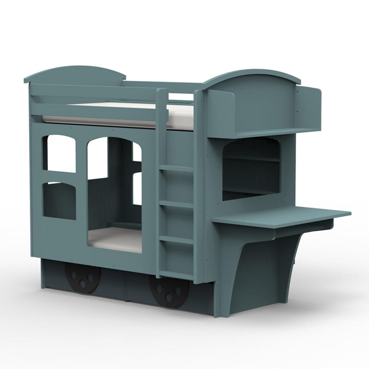 The stunning and uniquely designed Wagon Bunk Bed from Mathy By Bols is ideal for every day use and for sleepovers when extra space is needed. Great for adding a bit of storage in your kids room, with 2 easy pull out drawers on wheels and 2 shelves inside, there's plenty of space for all thier bits and bobs! With 26 colour choices available, there's something for every boy and girl. Handmade in Belgium, the bed is made from MDF and features a fixed ladder that can be installed either on the left or right of the bed. The desk and shelf are available as optional extras, these can be finished in a different colour or to match the bed.