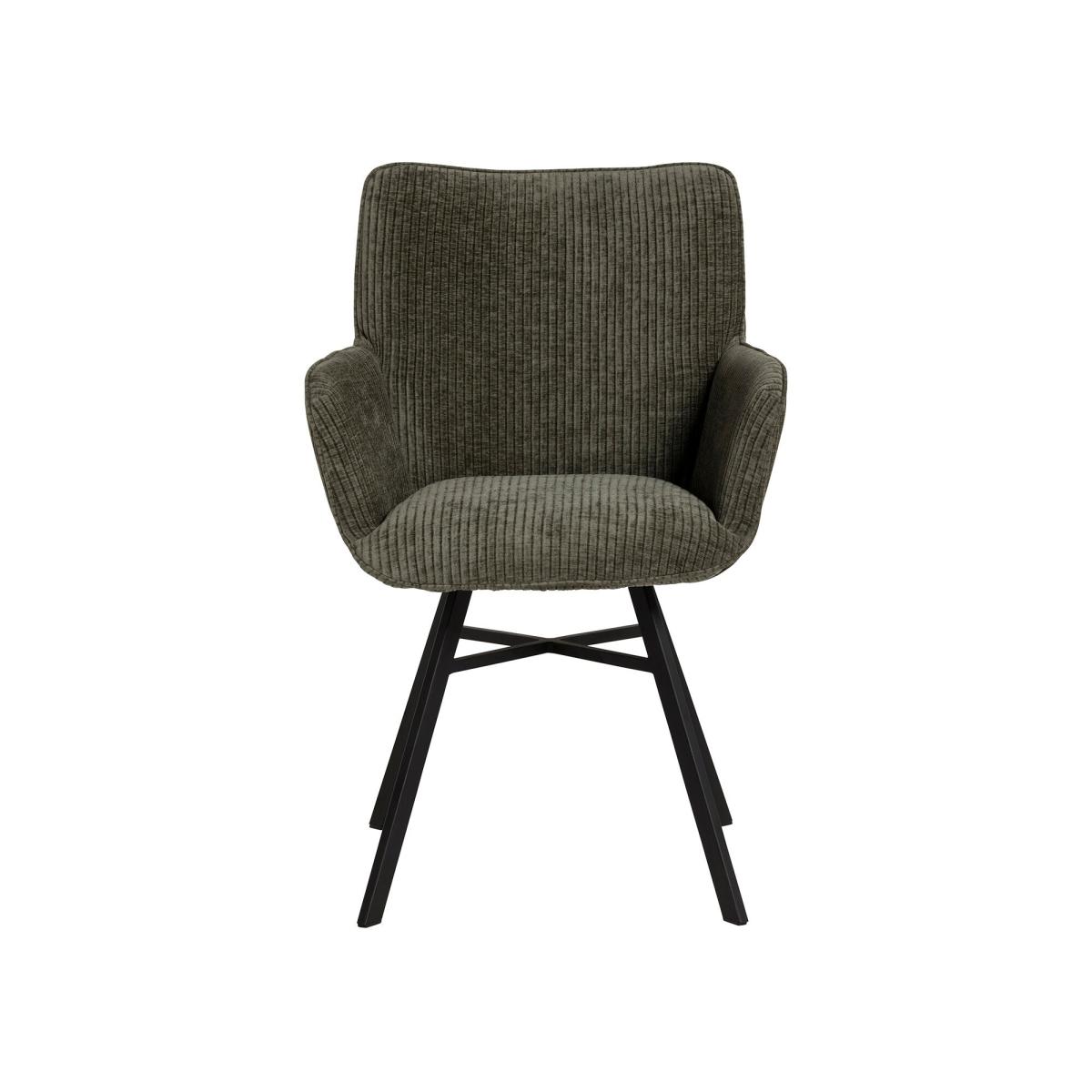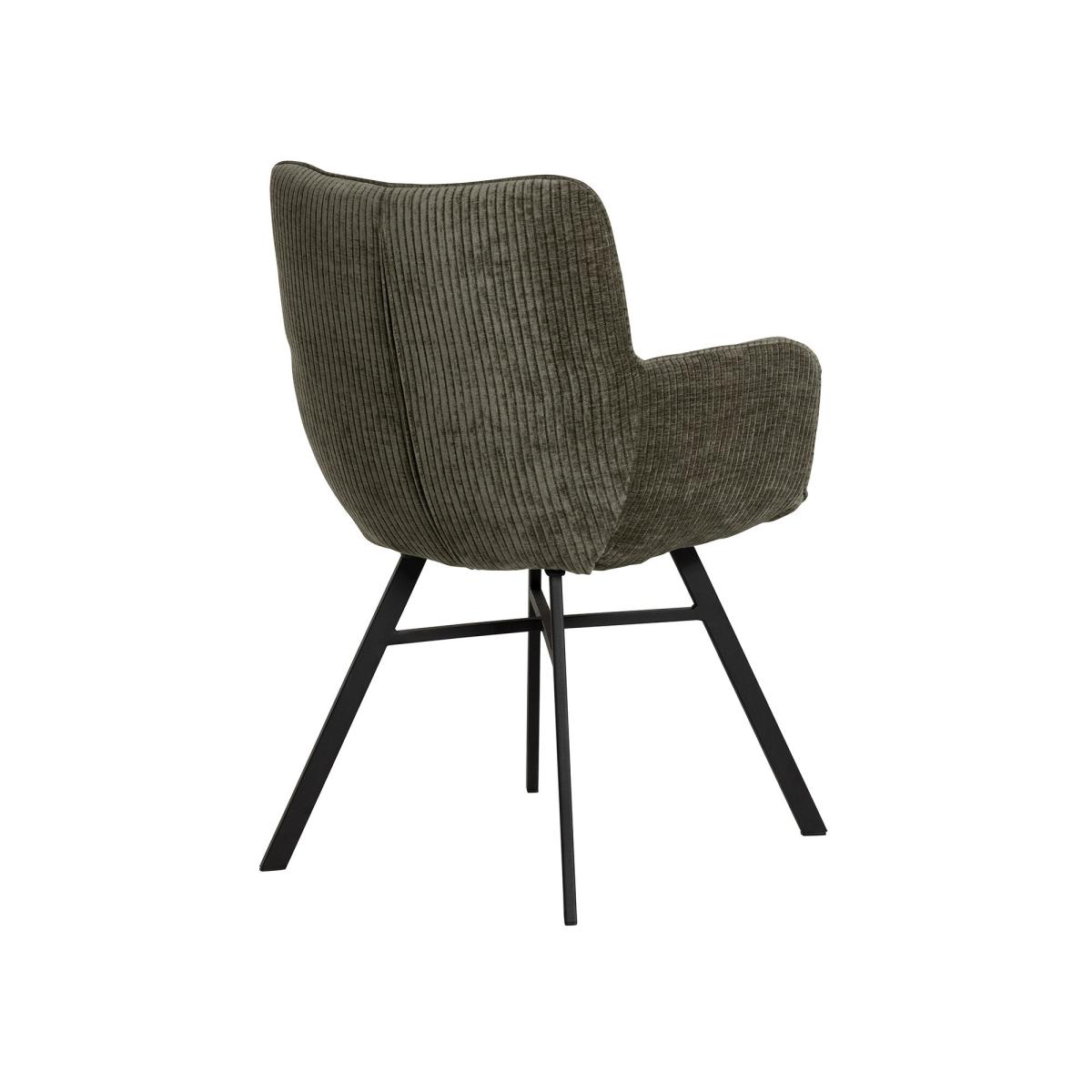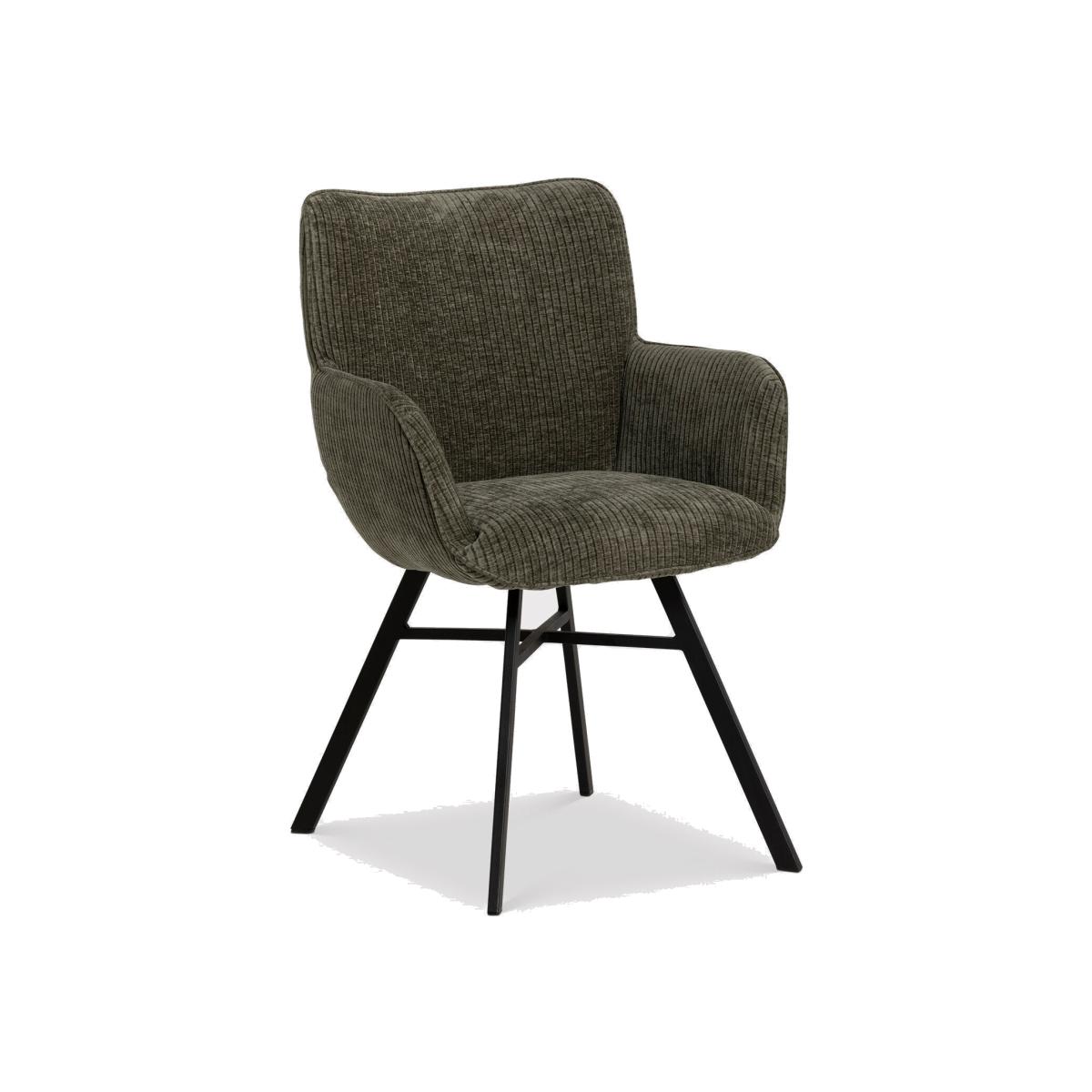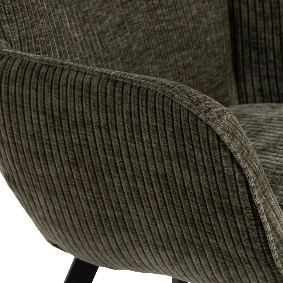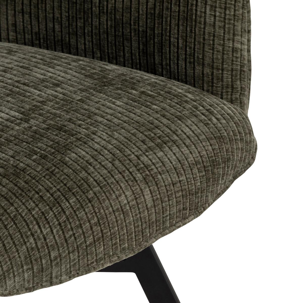 Bring comfort and style to your dining room with this modern chair. Upholstered in 100% polyester with a soft ribbed green finish, it adds texture and a fresh pop of colour to your space. The sleek black metal legs provide sturdy support and a contemporary edge, making it a versatile choice for everyday dining or entertaining.