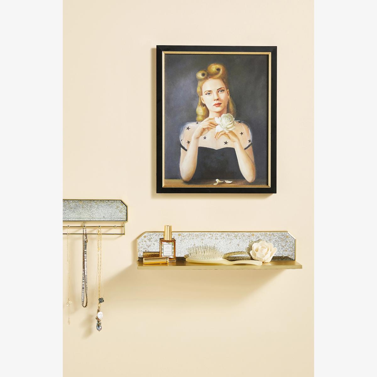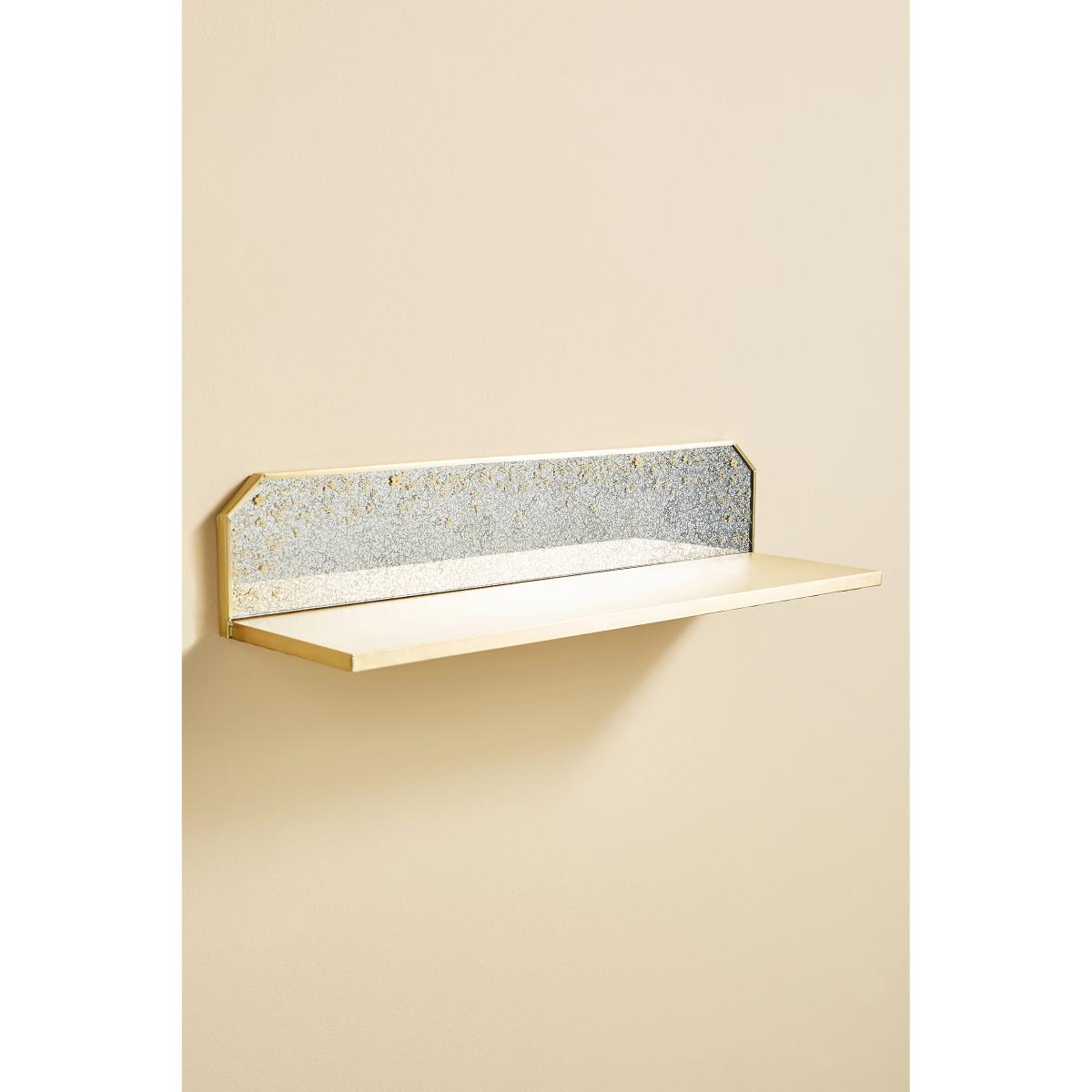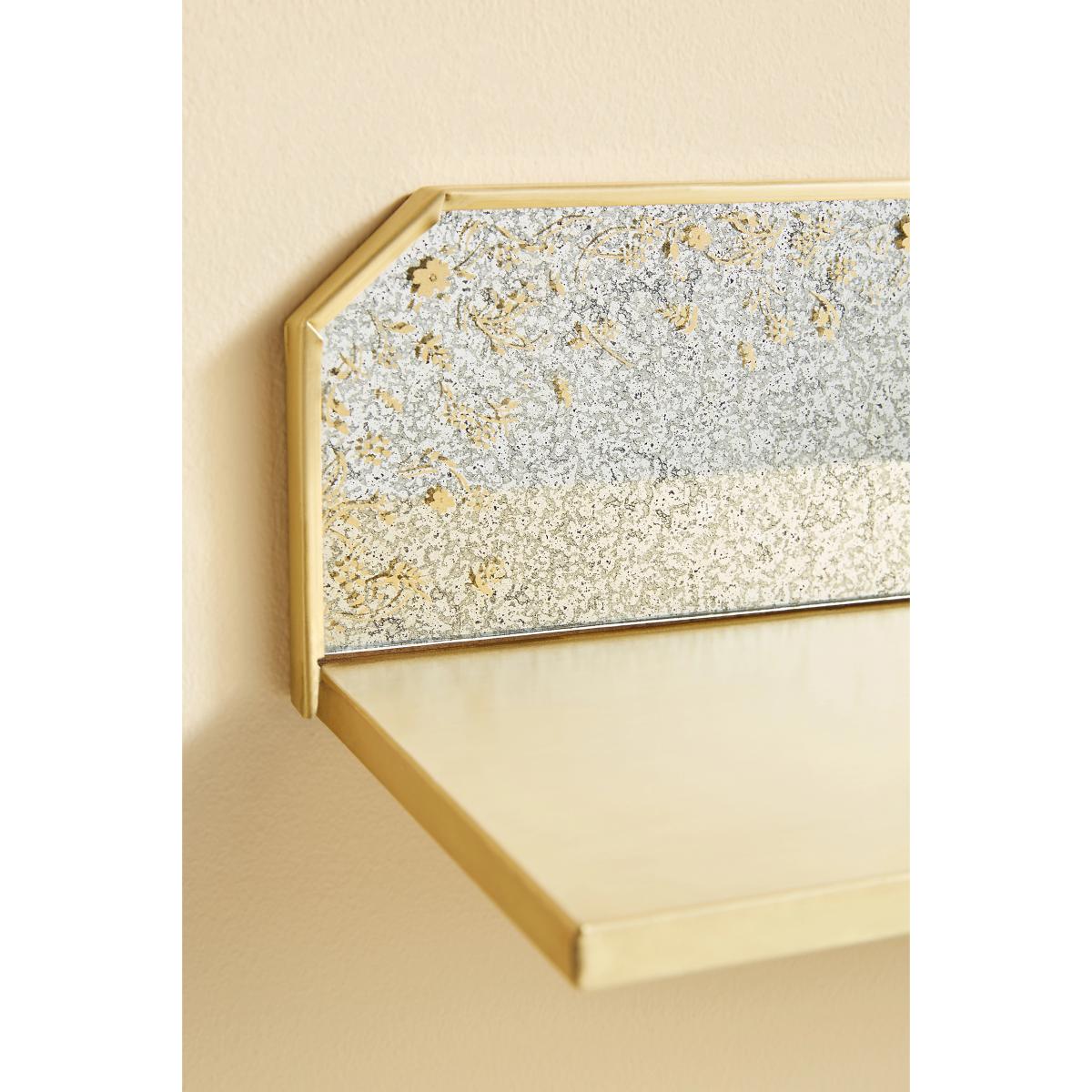 Enchanting gold florals set against a mirrored backdrop and an antique-inspired finish offer a romantic touch to this decorative shelf. Top it with your favourite scents or trinkets beside your dressing table. * Hanging hardware required * Handcrafted glass, brass, engineered hardwood * Due to the handcrafted nature of this item, expect slight variation in the appearance of each unique piece * Wipe clean with soft cloth * Imported