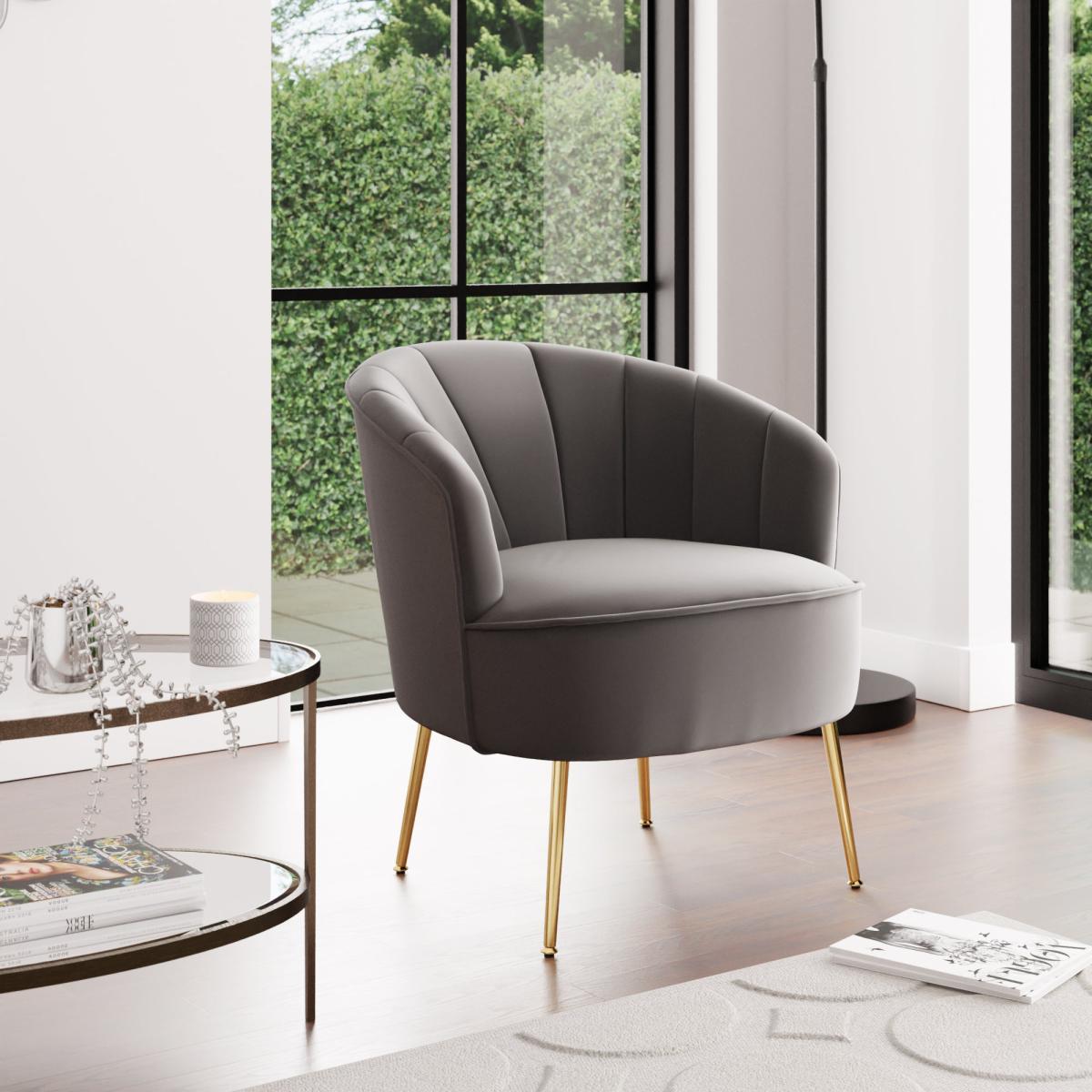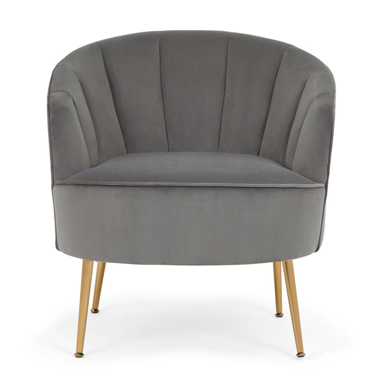 With its modern luxe styling, the Matilda chair features a pleated, curved shell back style, paired with elegant gold coloured metal legs to create a truly stunning piece. As well as being undoubtedly stylish, this chair offers exceptional comfort as well, thanks to the generously proportioned seat and foam filled complete with webbing for added support. The gorgeous velvet upholstery is not only soft to the touch, but is also 100% recycled, crafted from 27 plastic bottles per chair so it's kinder to the environment. Finished in a selection of trendy colourways, this chair would make the perfect accent piece to any home. Made with recycled materials. This chair comes with stunning gold legs however if you fancy changing the legs to a black or silver colourway additional legs are. Sold here. Care Instructions: Avoid prolonged exposure to direct sunlight. To check out our handy sizing guide to help you find out if you’ll be able to get your new furniture into your home.