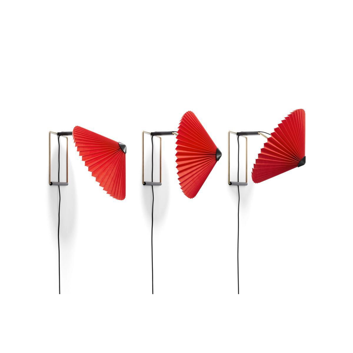 The French designer, Inga Sempé, is on a roll! For Hay, she designs a collection of charismatic lamps which are simple, fun and elegant. Matin combines visual delicacy and robustness. With her Matin lamps, the designer proves her love of colour and joyous minimalism to us once again. The pleated cotton lampshade has a delicious retro charm. Its traditional look is modernised by a range of vivid, current hues. Matin also illustrates Inga Sempé's fascination with folds: the designer explores how folds can transform a material and change its shape and texture. By playing with convention, Inga Sempé is updating the traditional table lamp's outline. This Matin wall light has an adjustable head that can be tilted approximately 45 degrees up and down to create ambient lighting as well as directional lighting. Very elegant, the wall frame is in polished brass finish steel wire with black ABS elements. The light source is an integrated LED providing diffused light, along with a dimmer on the cable. The Matin wall light is suitable for all environments, from the office to the bedroom. Designer Inga Sempé on her work: "I try to make simple objects (but not minimalist) with a particular character which will please people from 20 to 100 years old. ".