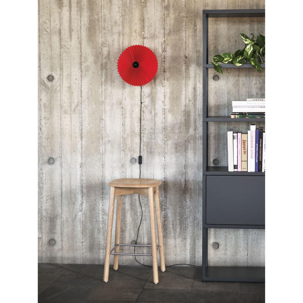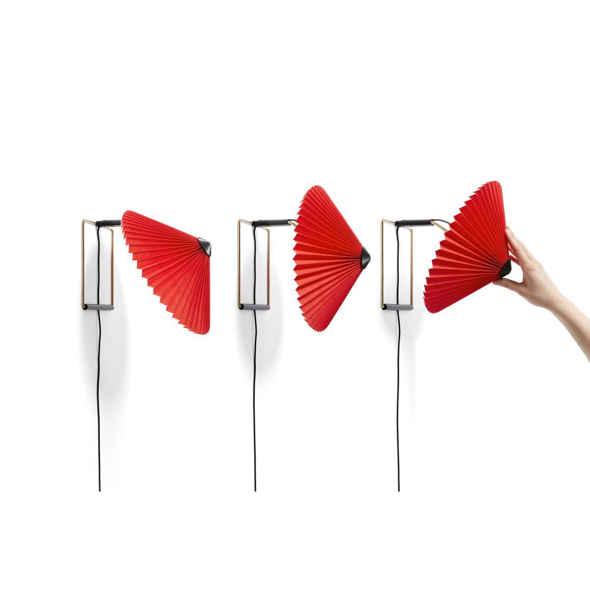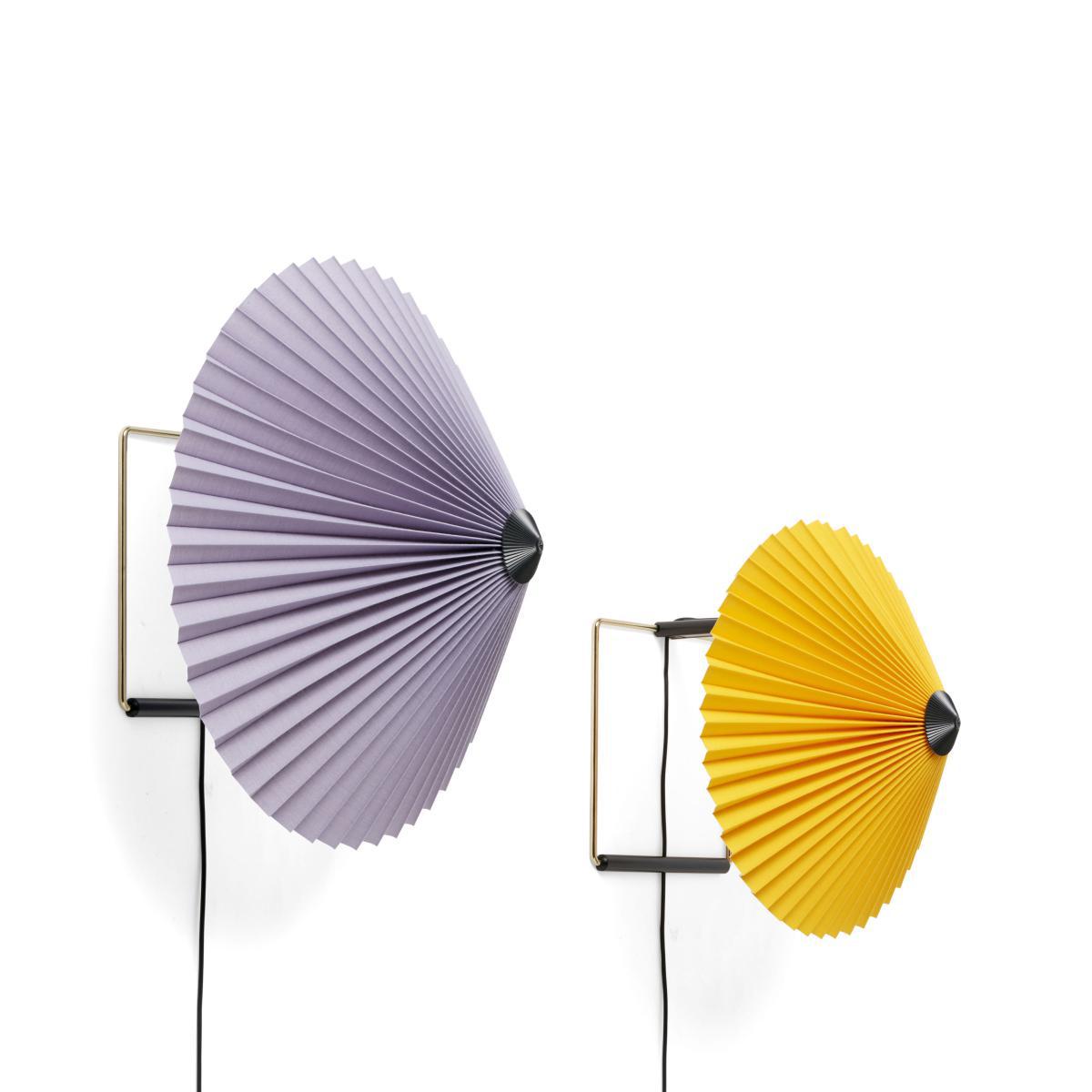 The French designer, Inga Sempé, is on a roll! For Hay, she designs a collection of charismatic lamps which are simple, fun and elegant. Matin combines visual delicacy and robustness. With her Matin lamps, the designer proves her love of colour and joyous minimalism to us once again. The pleated cotton lampshade has a delicious retro charm. Its traditional look is modernised by a range of vivid, current hues. Matin also illustrates Inga Sempé's fascination with folds: the designer explores how folds can transform a material and change its shape and texture. By playing with convention, Inga Sempé is updating the traditional table lamp's outline. This Matin wall light has an adjustable head that can be tilted approximately 45 degrees up and down to create ambient lighting as well as directional lighting. Very elegant, the wall frame is in polished brass finish steel wire with black ABS elements. The light source is an integrated LED providing diffused light, along with a dimmer on the cable. The Matin wall light is suitable for all environments, from the office to the bedroom. Designer Inga Sempé on her work: "I try to make simple objects (but not minimalist) with a particular character which will please people from 20 to 100 years old. ".