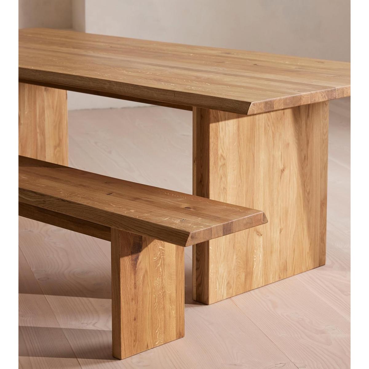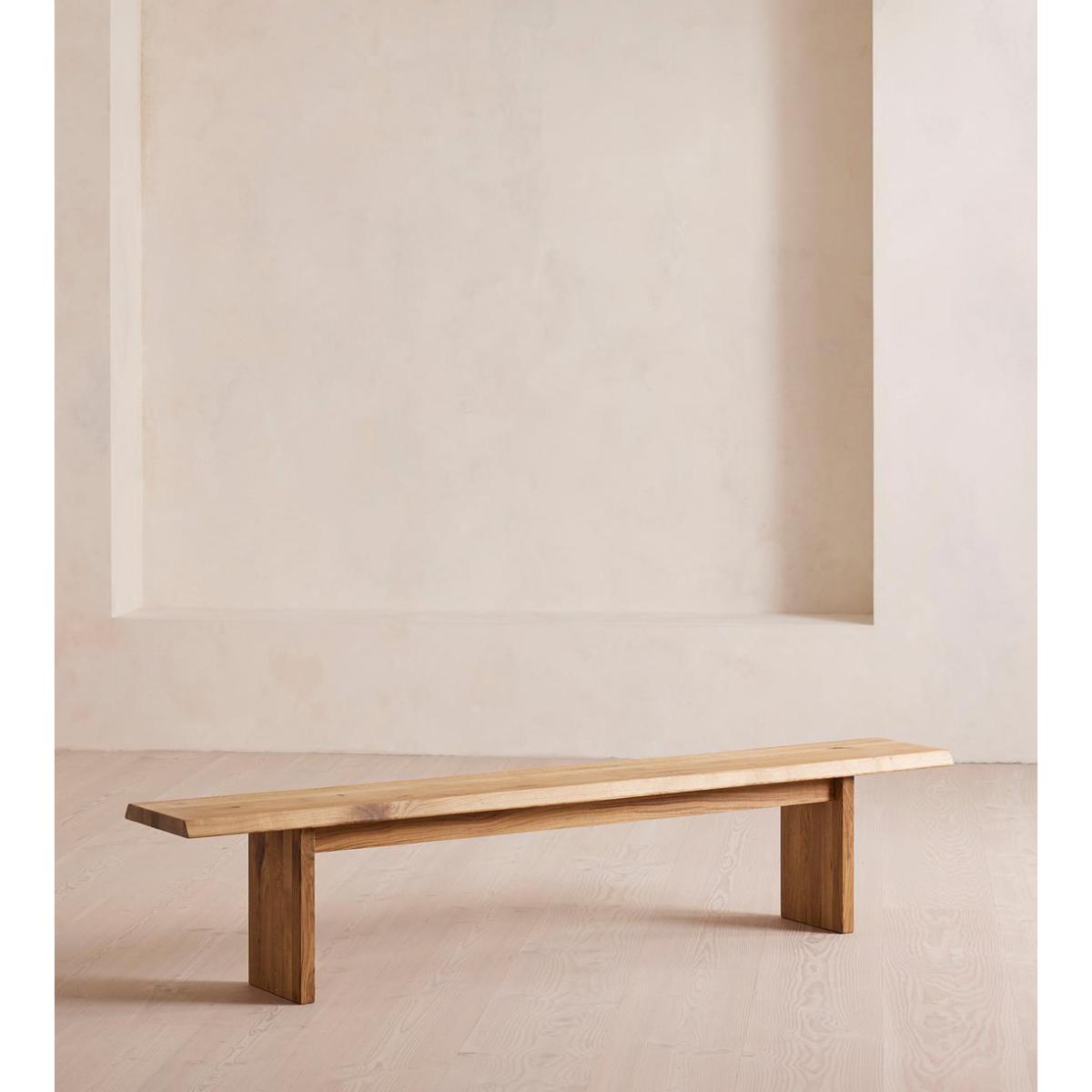 I’m a fan of this oak bench for its pared-back form and generous length - it really holds its own without overcrowding a space. The natural oak finish brings warmth and texture, making it an easy fit in Scandi-inspired, Japandi or minimalist schemes. Styling-wise, place it against a white or soft-grey wall and layer with a long runner cushion and a couple of contrasting lumbar pillows. Add a slimline shelf above at eye level to balance the horizontal line, and accent with sculptural vases or framed prints in muted tones to keep the look cohesive.